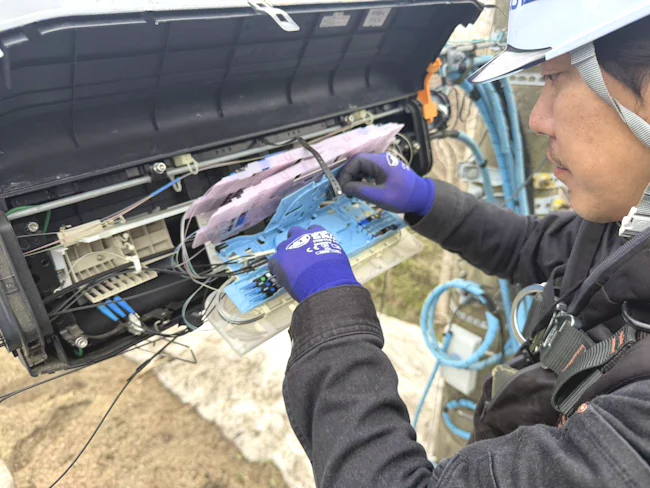 - インターネット回線を建物(個人宅・店舗など)へ引き込む作業で、