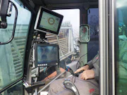 ◇掘削機の操縦/地上にある専用の操作室に入り、モニターを見ながら地中を進む掘削機の操縦。