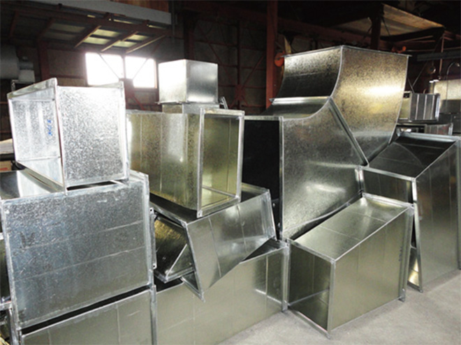 屋内でダクトを作成し、建設現場で組立設置まで行います。