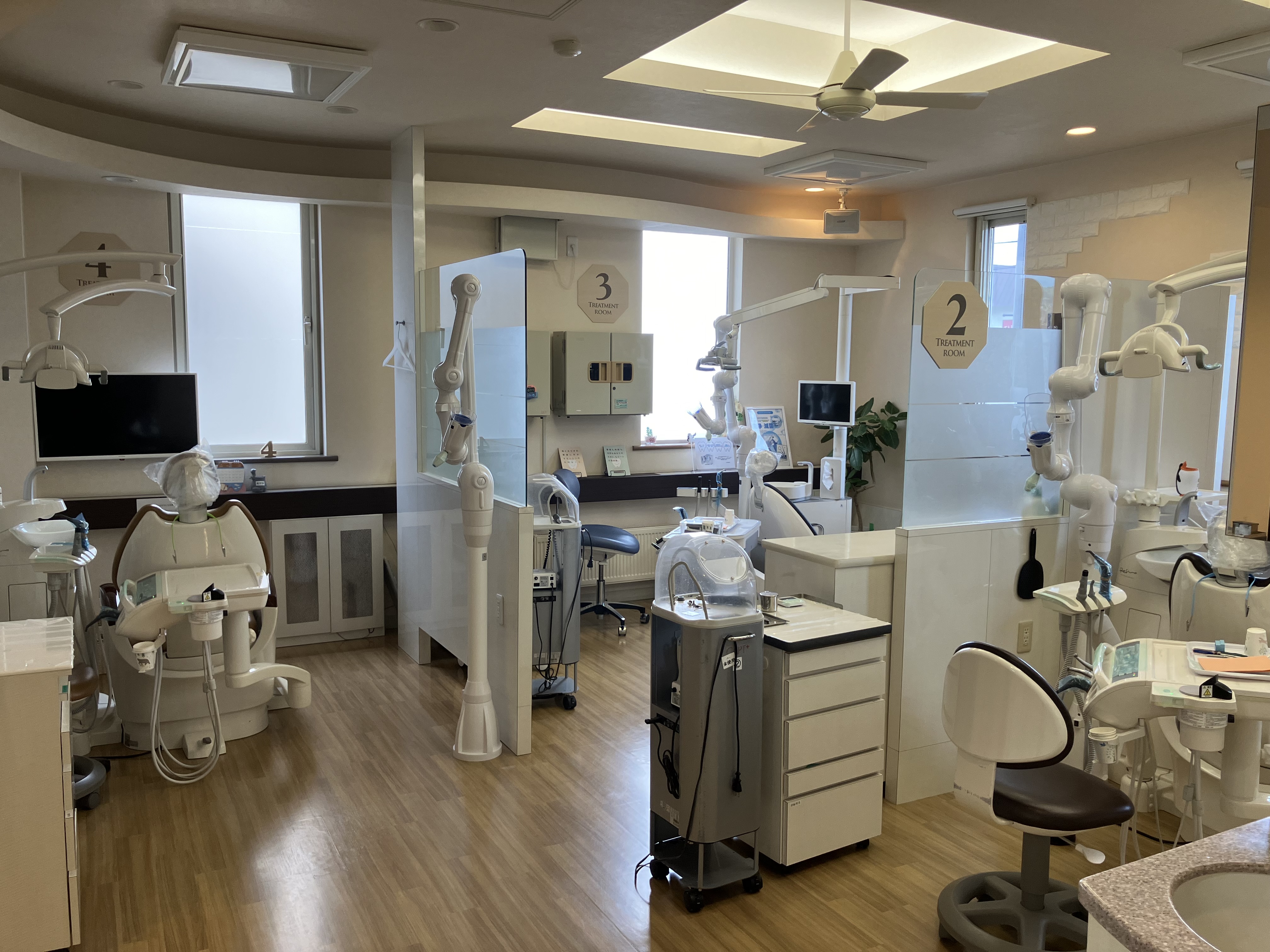 診察台は10台で全て個室タイプ、治療とメンテナンスを分けています。ここ数年でリフォームを行い清潔感のある院内です。ますは見学だけでも可能です◎
