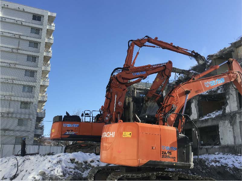 - 主にマンションや、ビルなどの大型施設の解体工事現場での重機オペレーター(バックホー乗車)業務をお願いします。現場監督の指示のもと、作業員と協力して解体を進めます。経験の浅い方はしっかりと指導もいたしますので安心してください。将来的には現場のリーダーとして活躍していただくことも可能です。