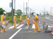 道路のライン引き補助作業