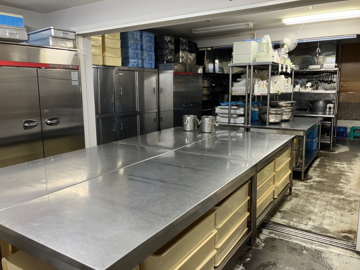 こちらの広い厨房内でお弁当を盛り付けます!