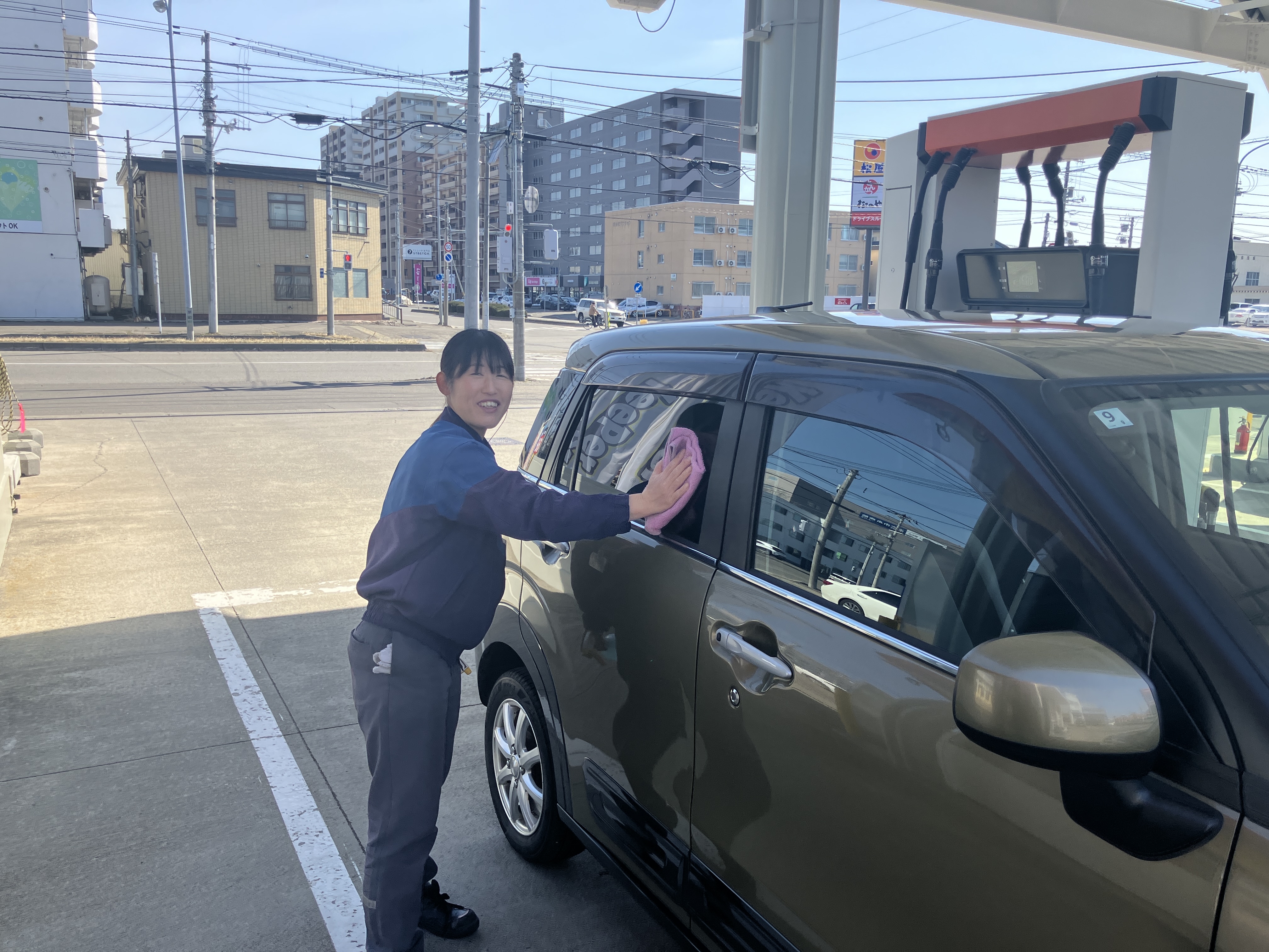 先輩スタッフが基本から丁寧に教えていきますので未経験者もご安心ください♪まずは給油や窓拭きを覚えていただきます。
