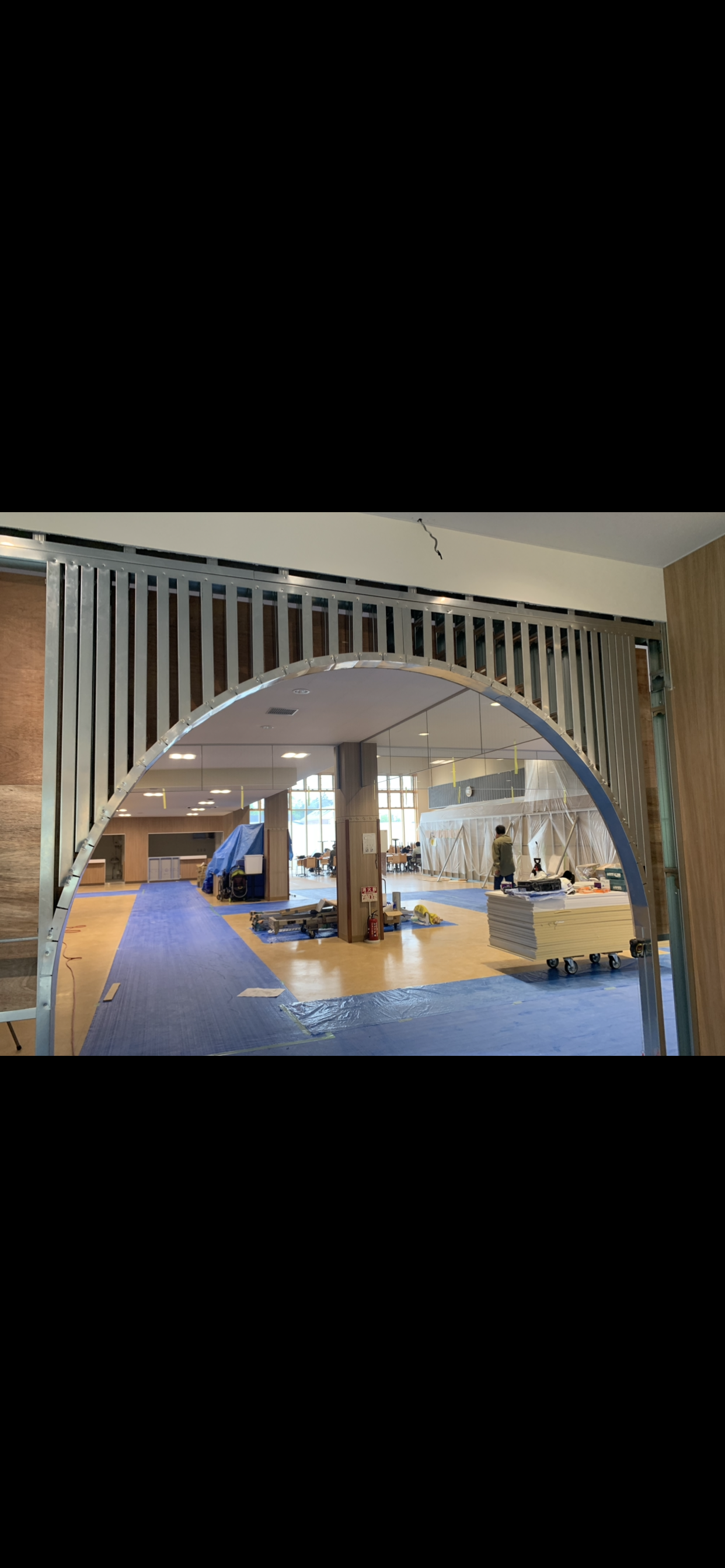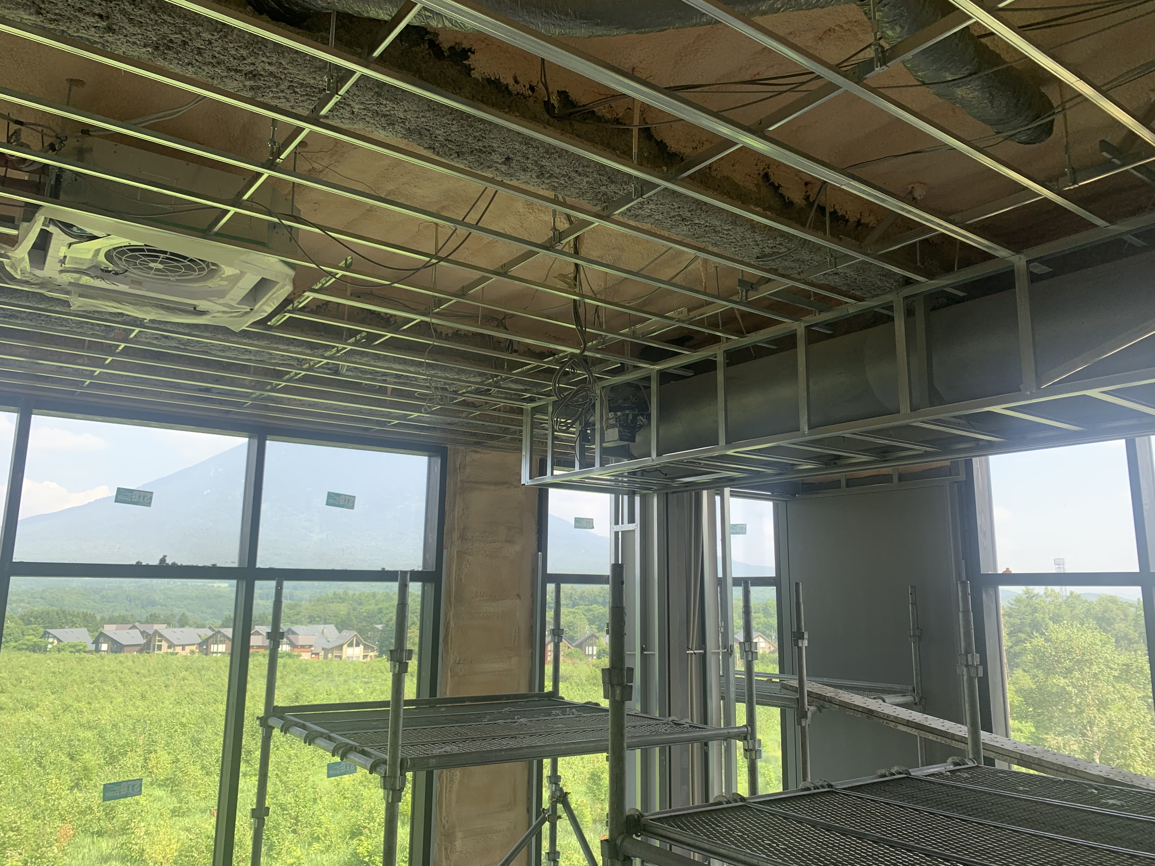 鉄の骨組みを組み立て石膏ボードを貼りつけるまでの作業です。