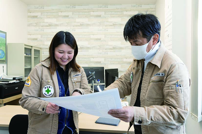 工事部や営業部、経理総務部など各部署で社員が活躍していますが、チームワークはバッチリ!お互い助け合い声をかけることが自然と出来ている穏やかで優しい雰囲気の職場です♪