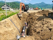 <農業土木工事にて、排水管の掘削、布設を行っています>