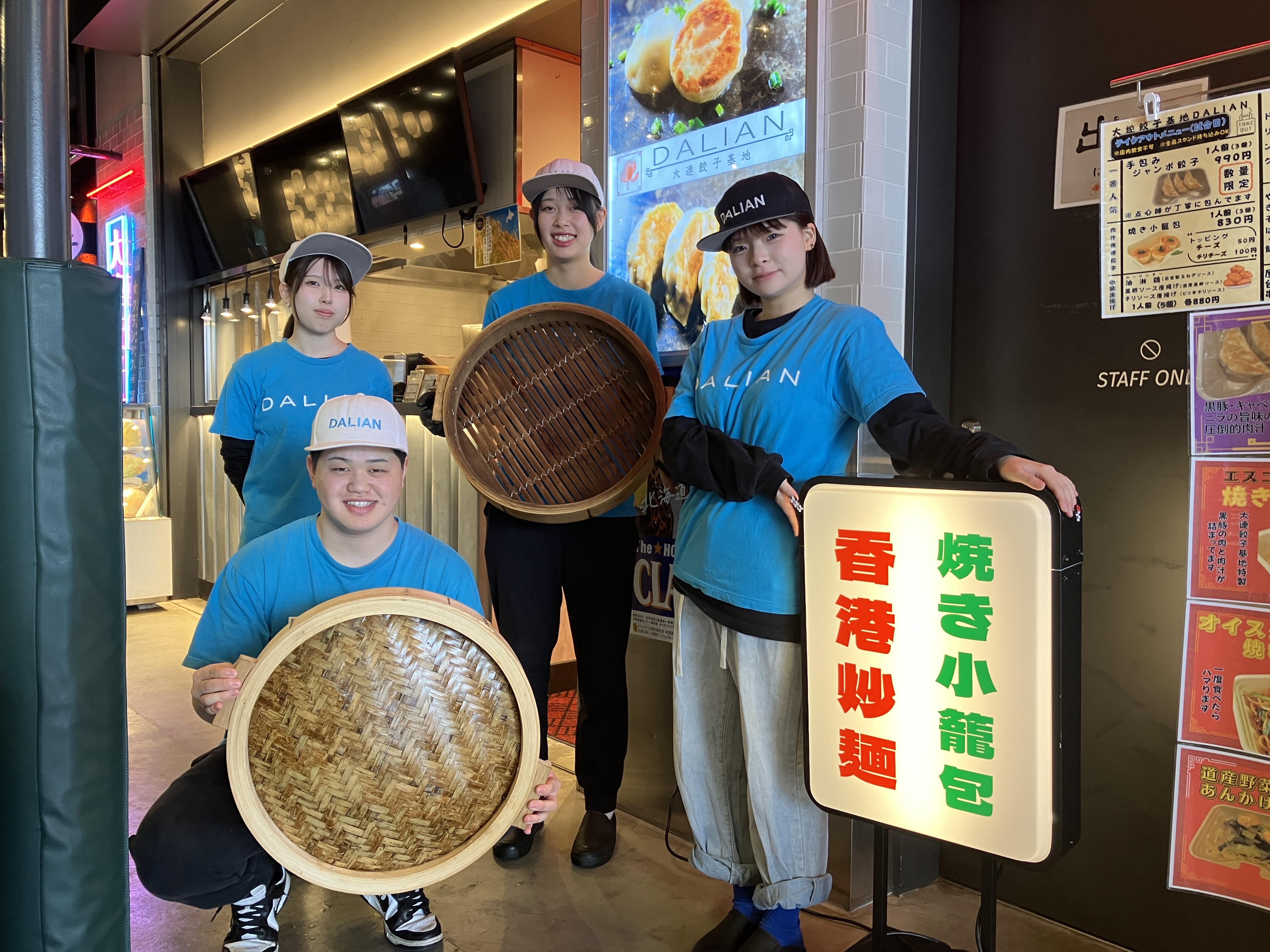 - 餃子・焼き小籠包をはじめとした中華料理の販売・接客業務となります。焼き作業や盛り付け、仕込みなどの調理補助業務もありますが、誰でもすぐにできる作業で難しい事はありません。