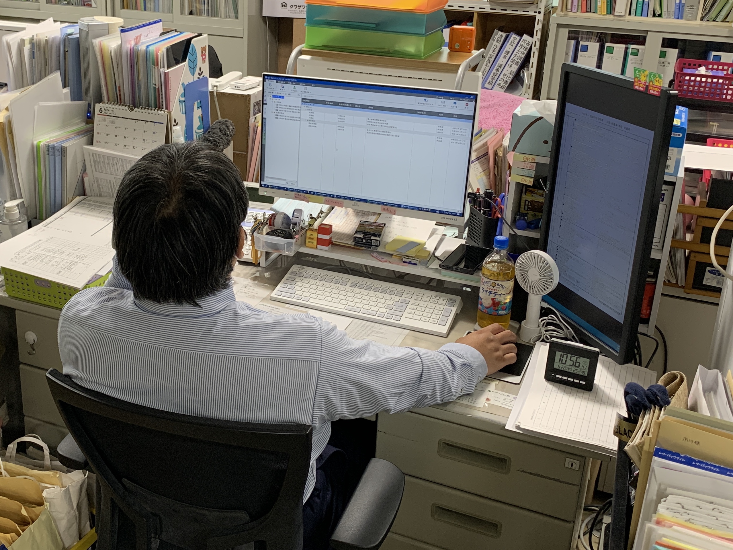 仕事中の写真です。事務所内での事務処理業務をお願いしています。