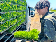 - お米の種まきの作業や田植え作業等。
