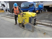 - 専門工具による舗装・コンクリート版の切断作業。