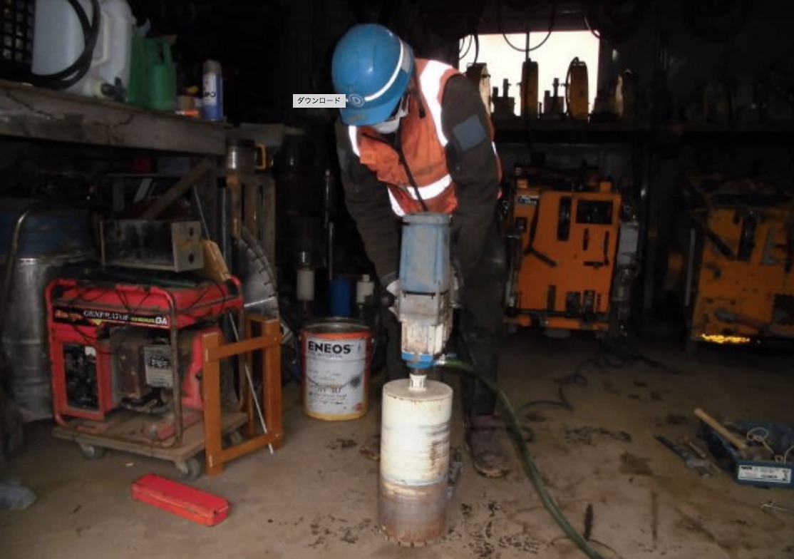 工具によるコンクリートへの削孔(穴開け)作業。
