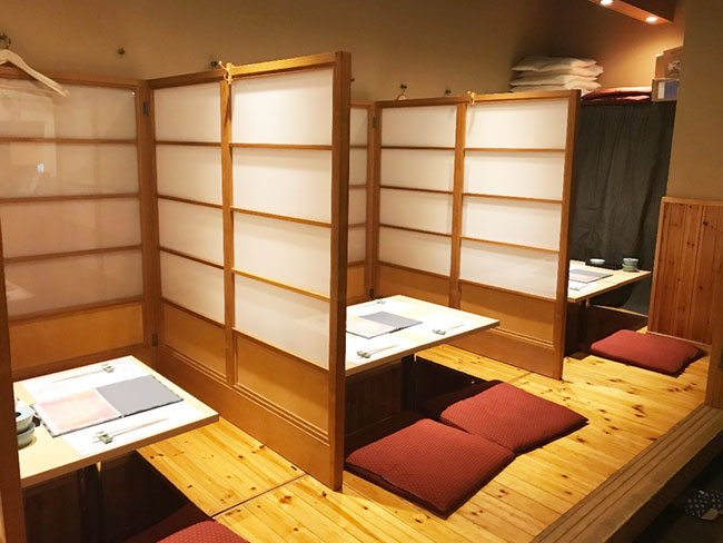 カウンター8席、テーブル席が4つ(16席)と小さなお店です。カウンターは職人が中心に接客をするので、こちらのテーブル席(4つ)での接客を中心にお願いします。