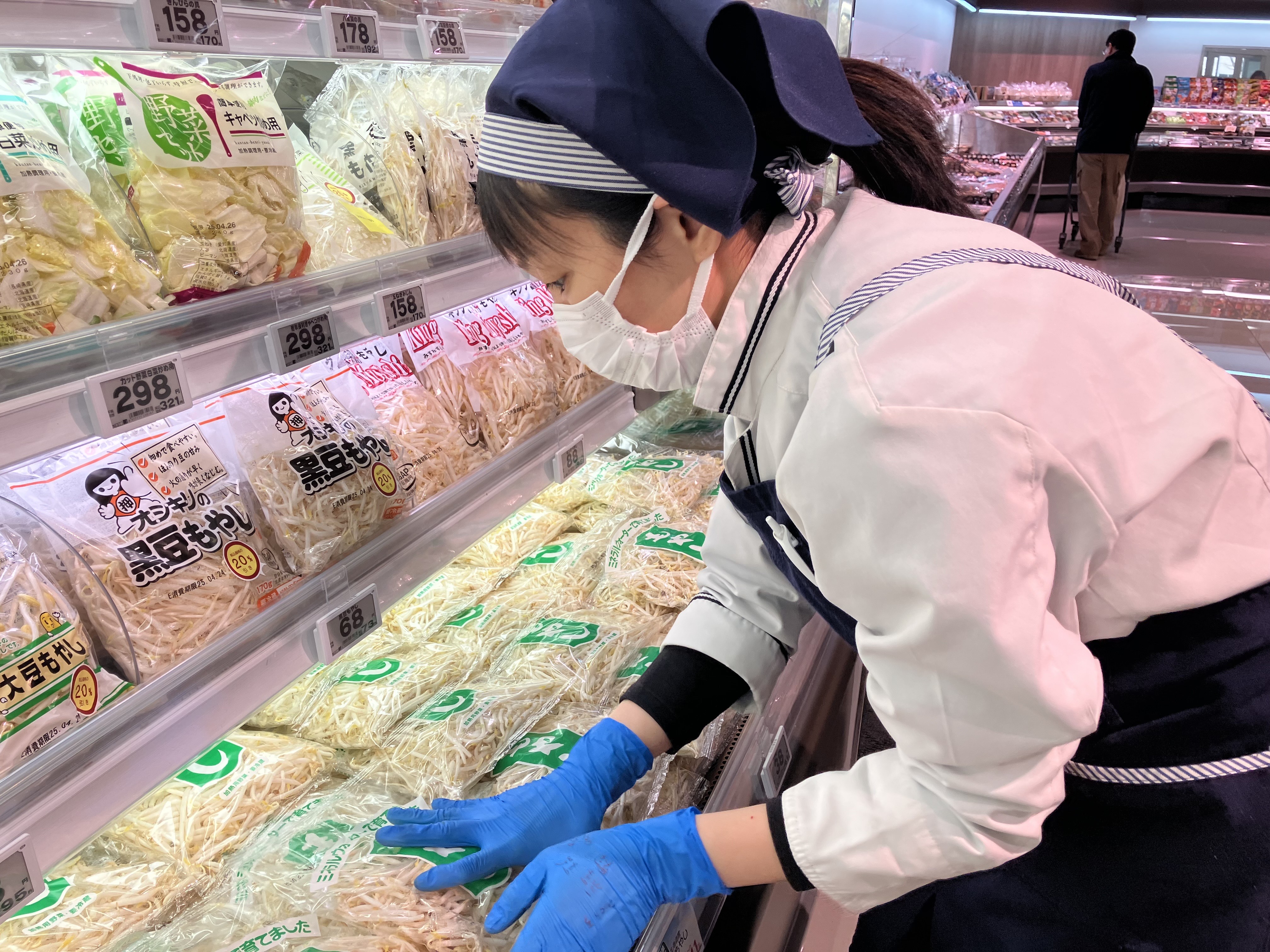 - バックヤードで野菜や果物をパック詰めしたり、値札シールを貼ったり等の簡単作業からスタート。他、店頭への品出しもあります。