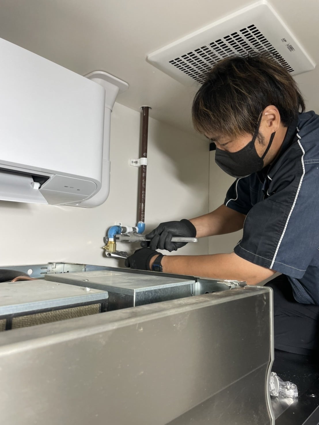 エアコンの室外機と室内機までをつなぐ配管(パイプ)の施工が中心です。