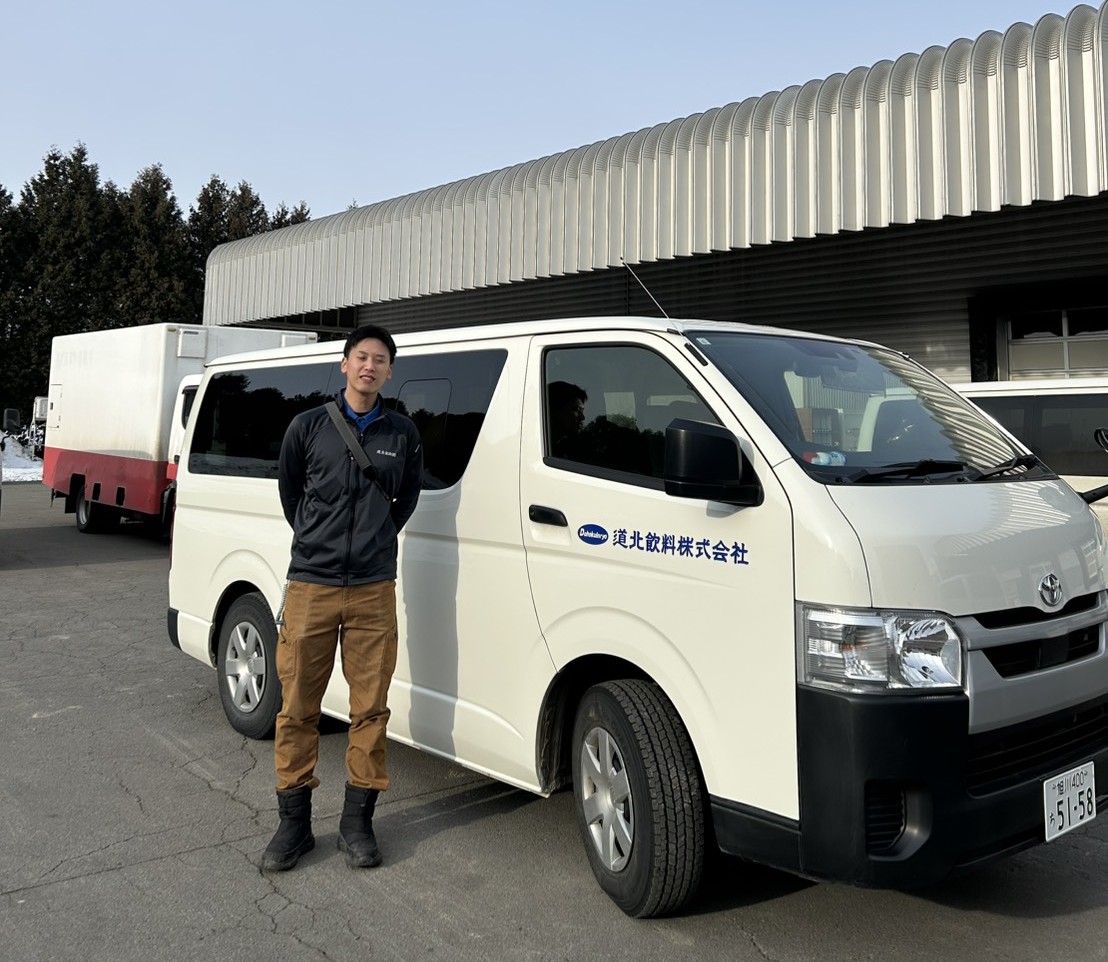 - 既存のお客様のお店や自動販売機への商品補充のルートサービス。使用する車はハイエースで、旭川市内を中心に1日に回る件数は20件弱です。回りきれないときも他のスタッフと連絡をとりながら全員でカバーします。1〜2カ月の同行研修後、担当ルートを決めて、1人で仕事をして頂きます。(転勤はありません)