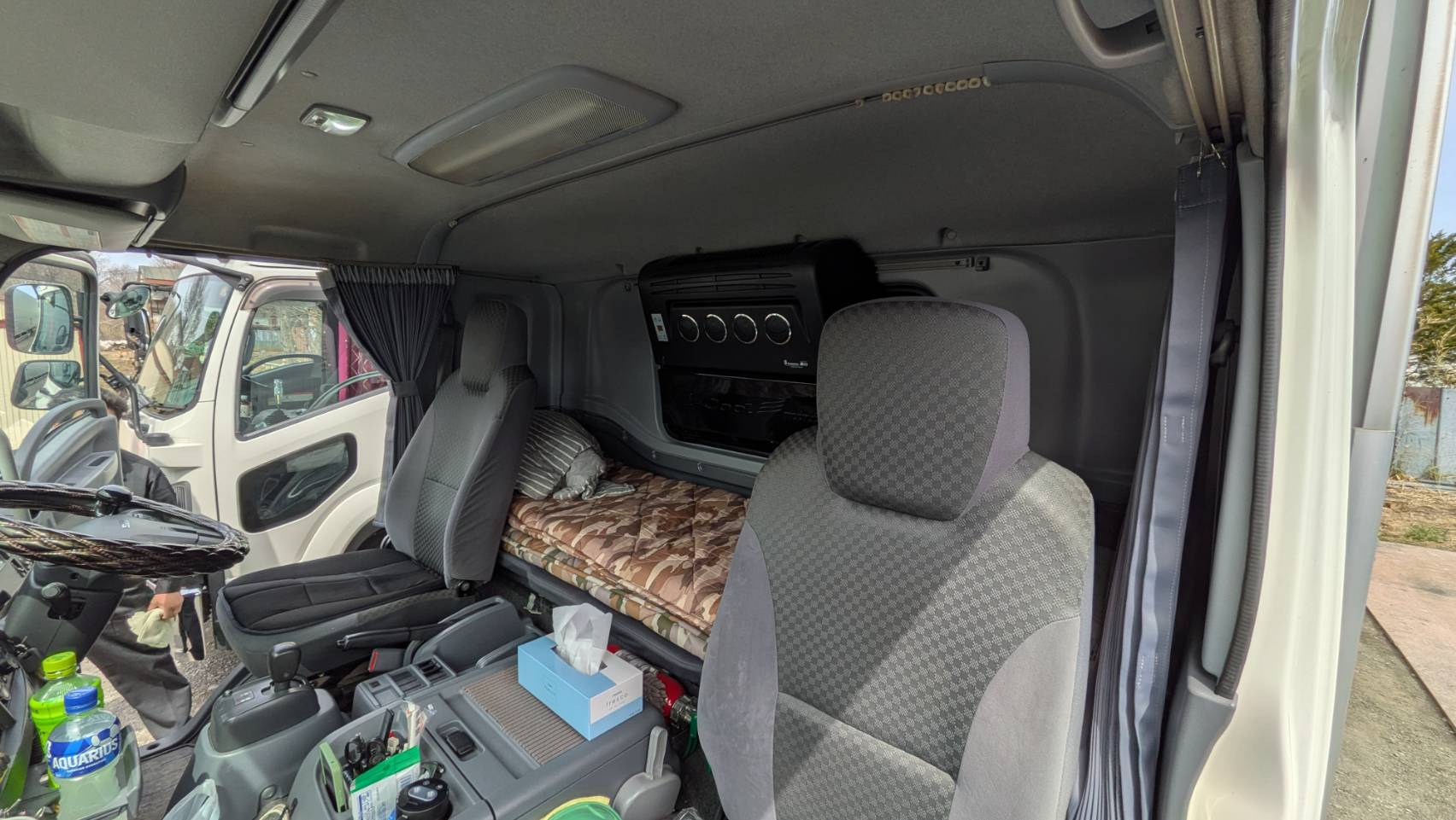 コンパクトですが、横になると意外とぐっすり。フェリーの待ち時間やSAでの仮眠も、プライベート空間でしっかり休めます。自分専用の固定車なので、寝具も自分好みに◎