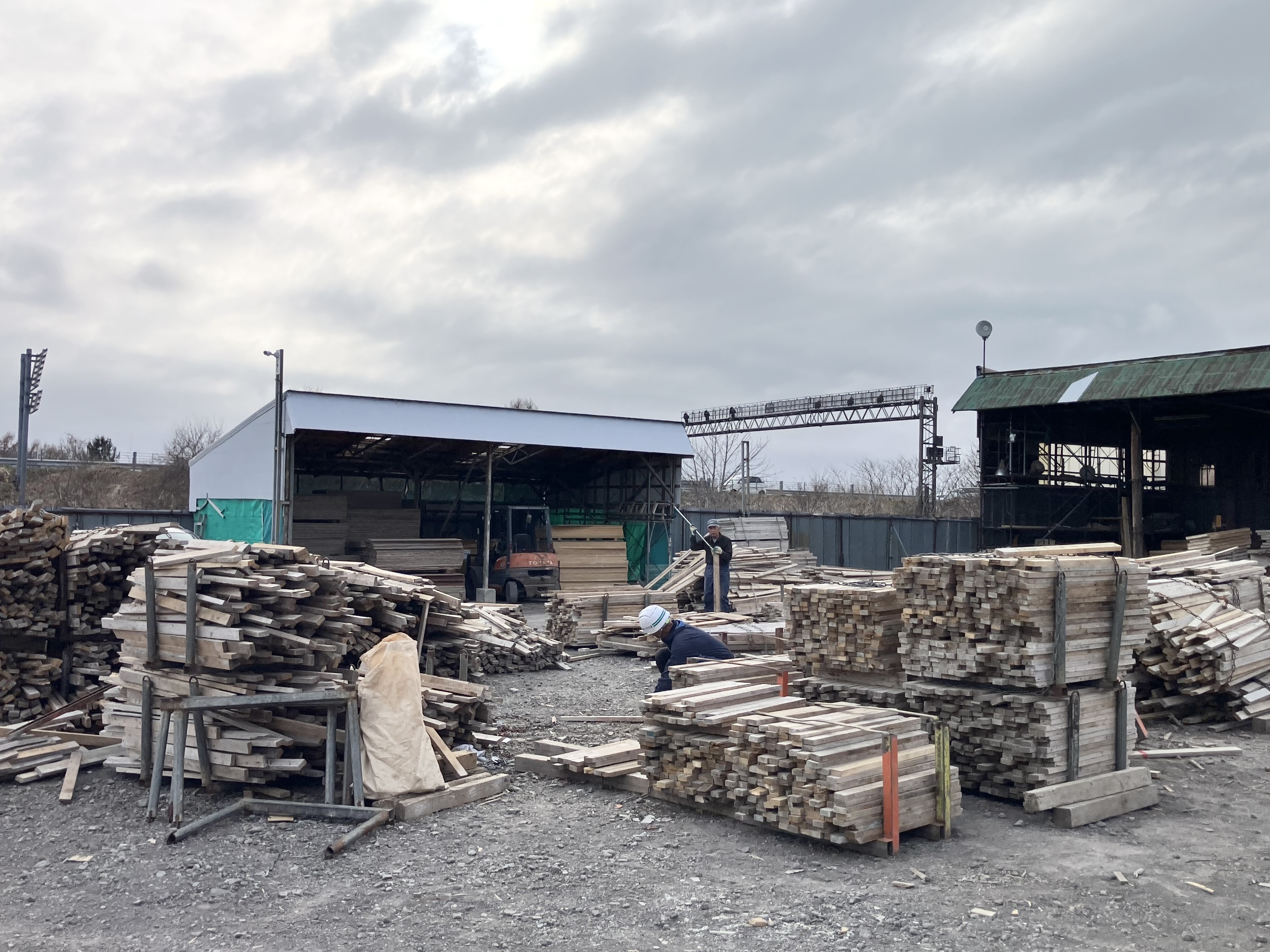 七飯町の資材センターでは、作業員さんの他、大工さんなど様々な職種の方が垣根なく楽しく働いています!
