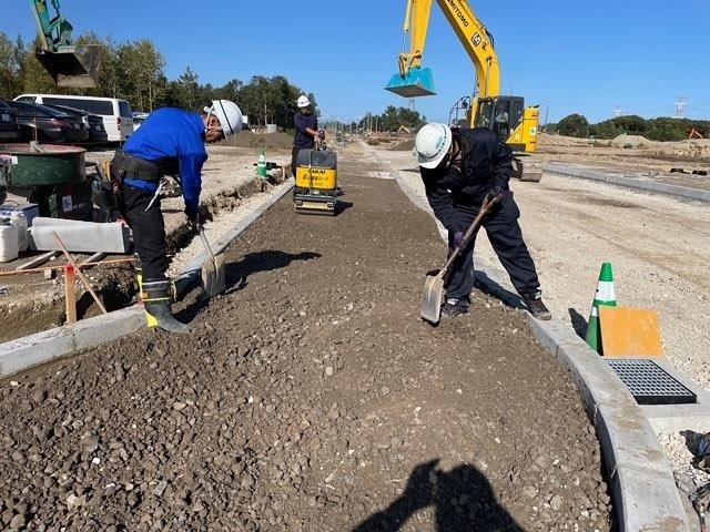 - 道路・河川・外構などの各種土木工事現場での作業全般。資材の運搬・掘削・整地・片付けなどを行います。