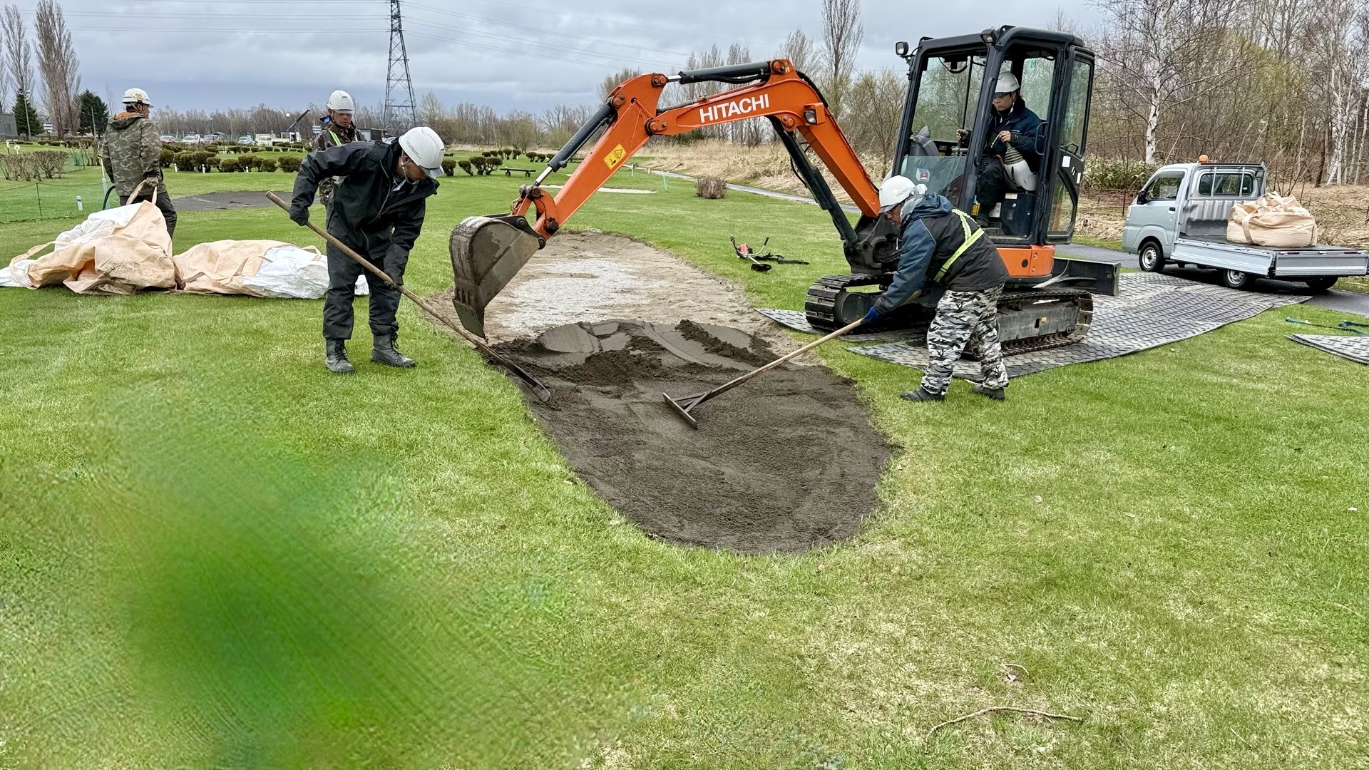 - ◇夏場/主に小・中学校のグラウンド整備や道路の舗装・修繕などの公共工事です。道路のパトロール、石狩新港地区草刈りなど、道路維持管理業務もございます。