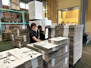 注文内容に応じて、指定の棚から商品(主に段ボールや発泡箱、包装資材など)を取り出し、配送先ごとのパレットへ商品を並べる作業です。
