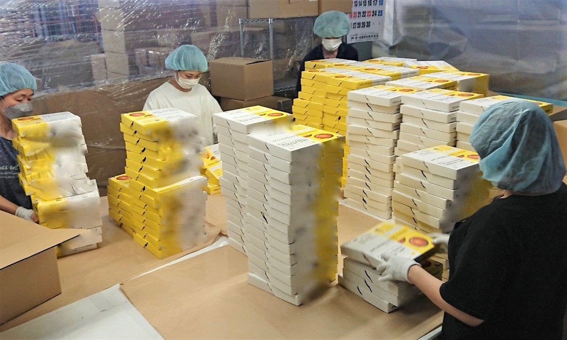 流れ作業で分担しながらお菓子の箱など組み立てますので、簡単な作業から少しずつ取り組んで頂きます。
