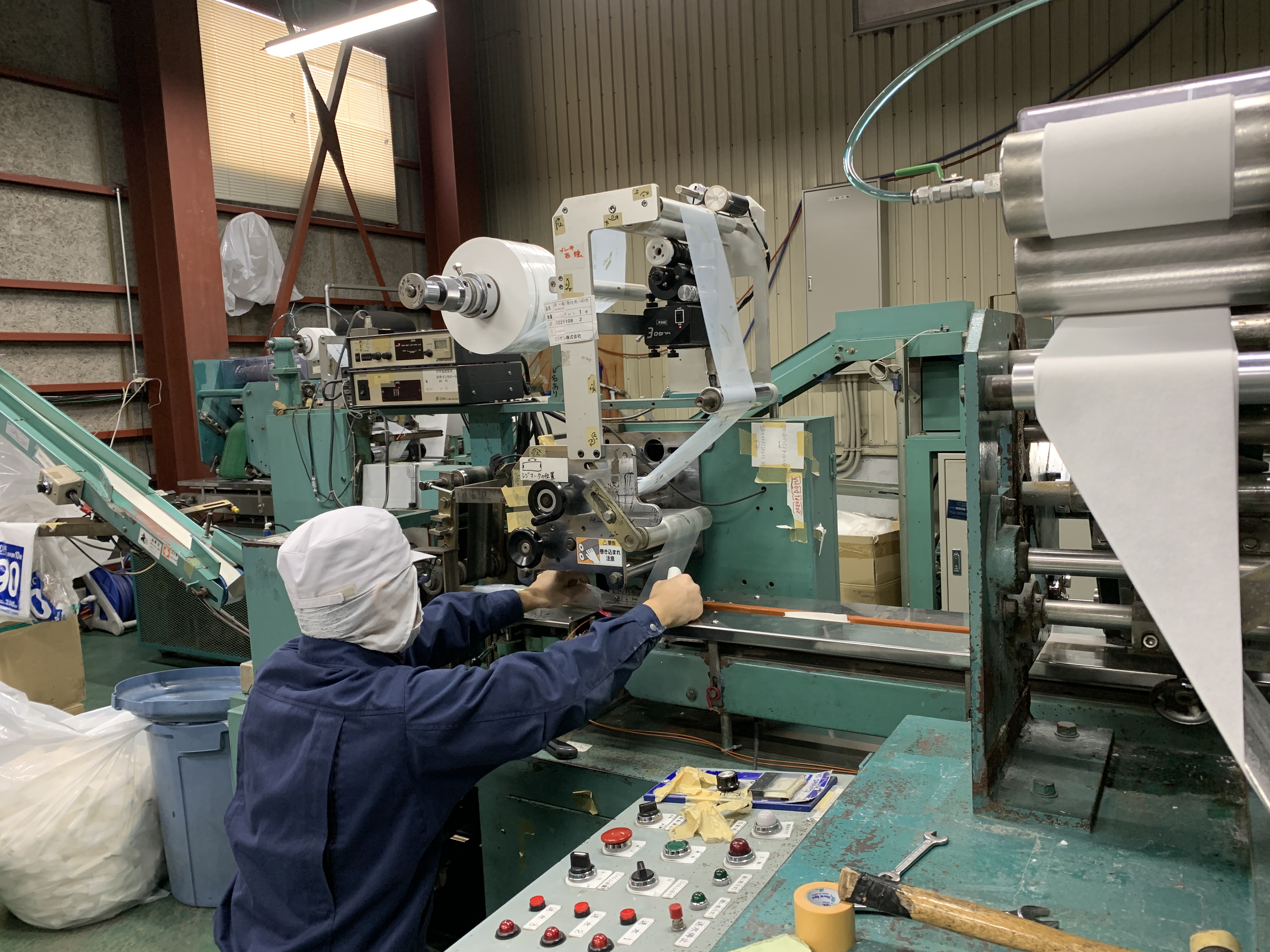 - 紙おしぼりを製造する機械オペレーターとして、下記業務をお願いします。