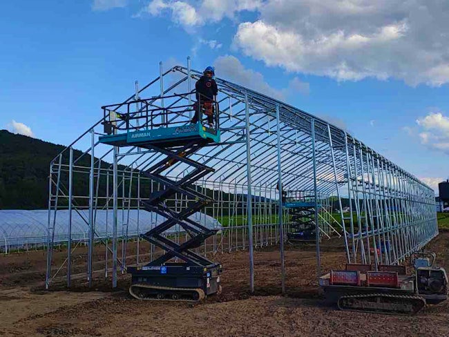 ビニールハウスの組立スタッフ