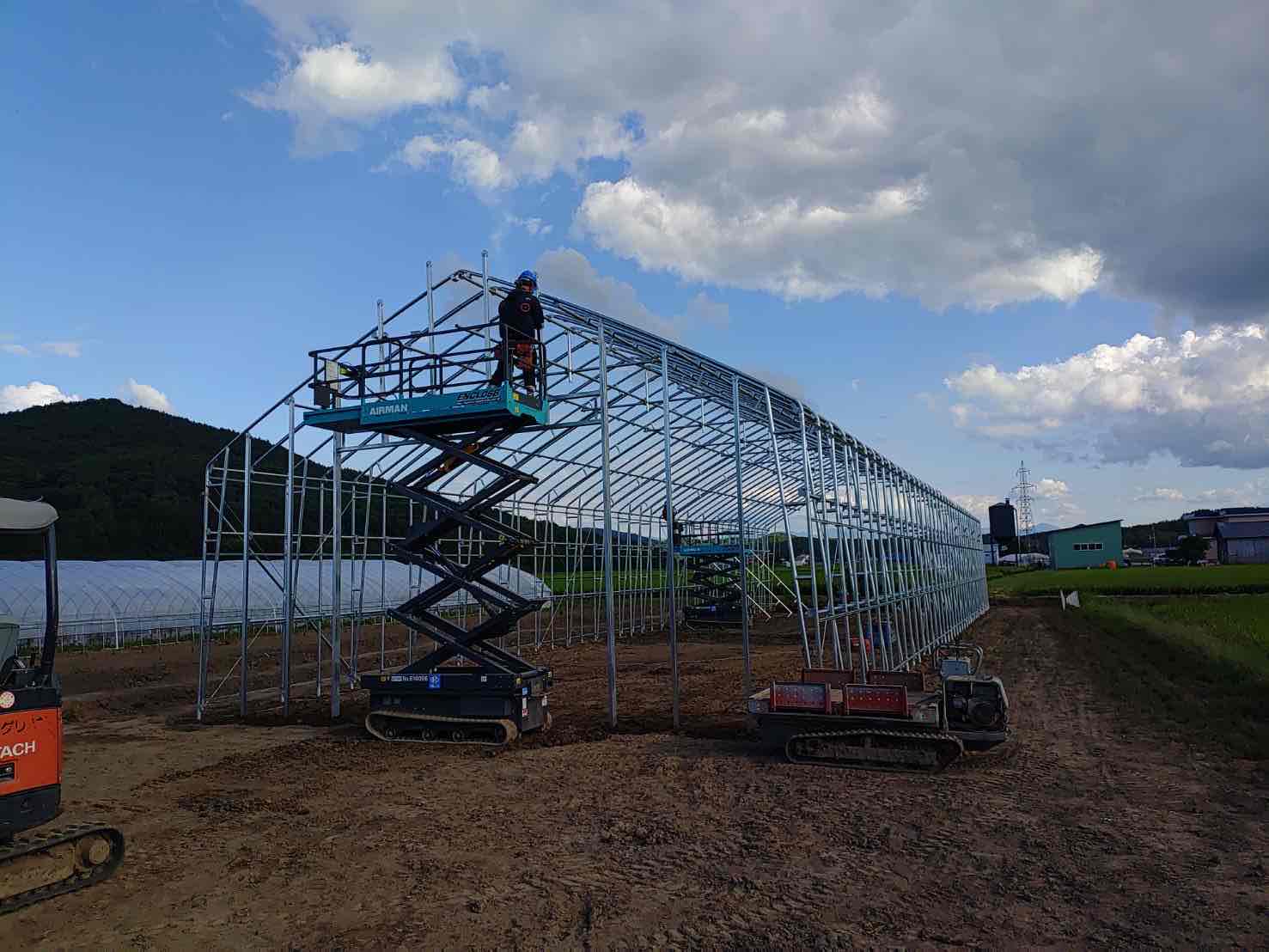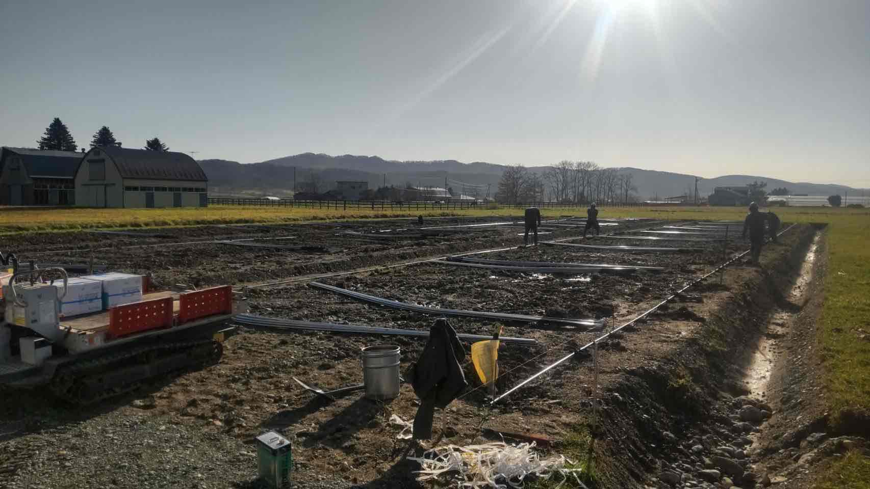 現場でパイプ・ビニール等を運んだり、パイプを立てるための穴掘り、ビニールを張る補助作業などからスタートします。