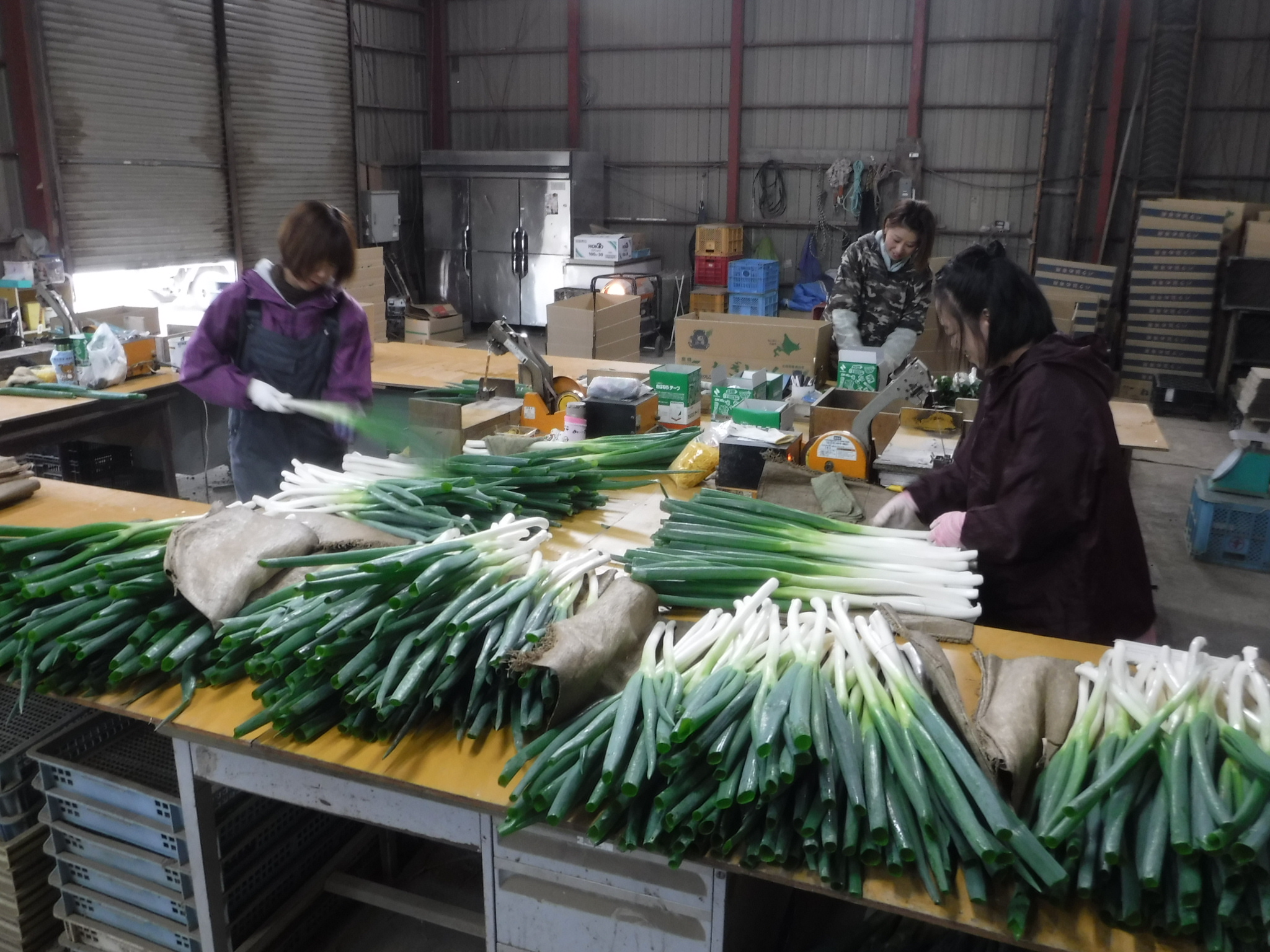 - 収穫した長ねぎを倉庫の中でサイズ別に分けたり、箱に入れるなどの選別作業を行います。作業は難しくないです。その他、スイカの選別作業も時期によってはございます。