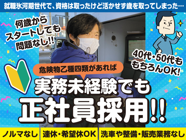 危険物乙4を持っているけど眠らせている方も、経験がない方も、現在他のスタンドで勤務中の方もOK!