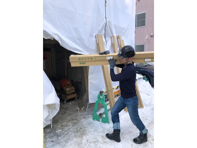 - 新築一軒家・マンション等の現場にて、ボード・建具・ユニットバスなどの商品を建物内へ運ぶ仕事です。