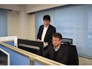 中島さん(手前)はSE兼営業として活躍中。既製ソフトでは対応できない業務フローを持つお客様に対し、自らプログラムを構築。ニーズに合わせた「世界に一つだけのシステム」を提供、お客様のご要望にお応えしています
