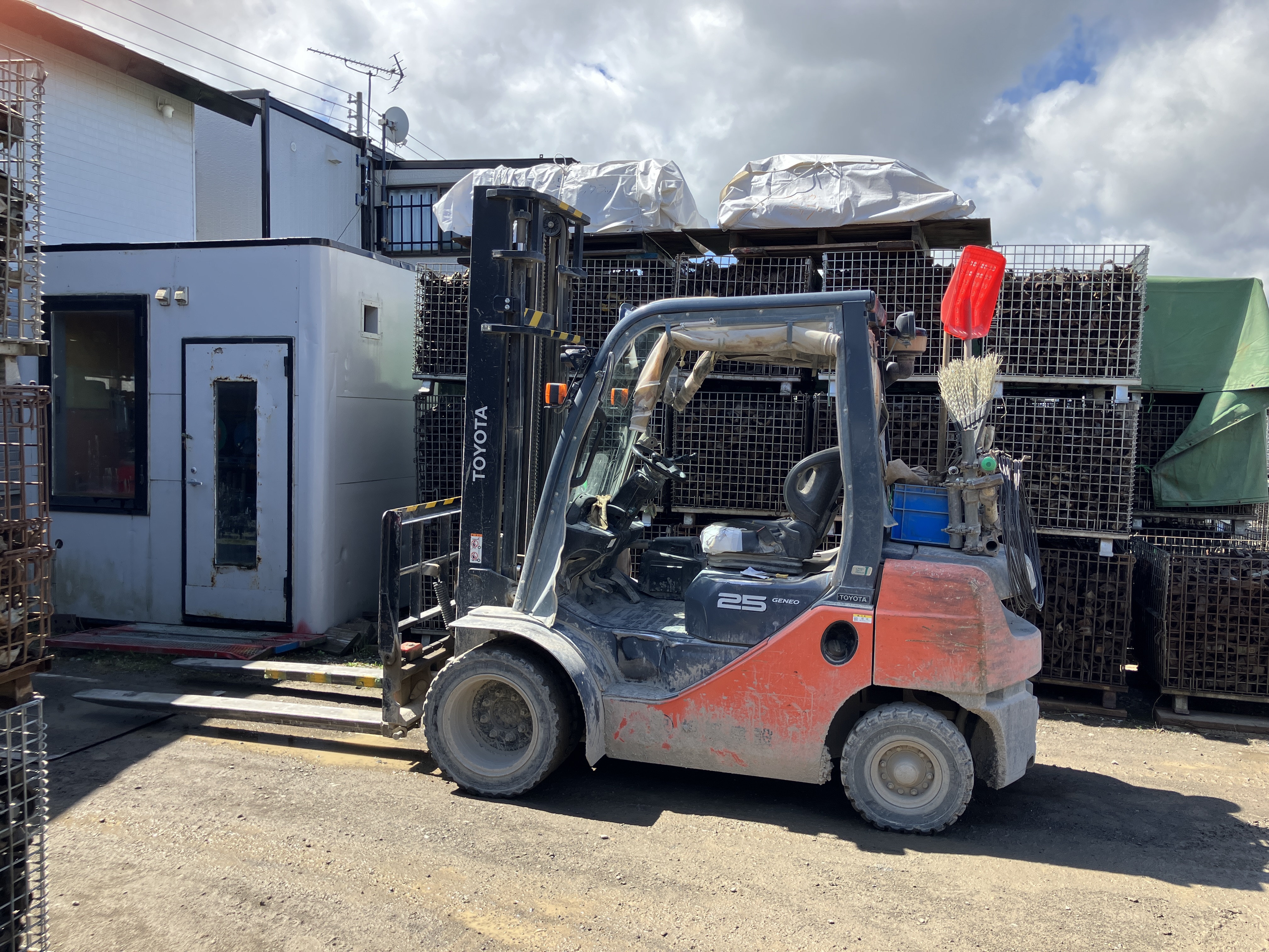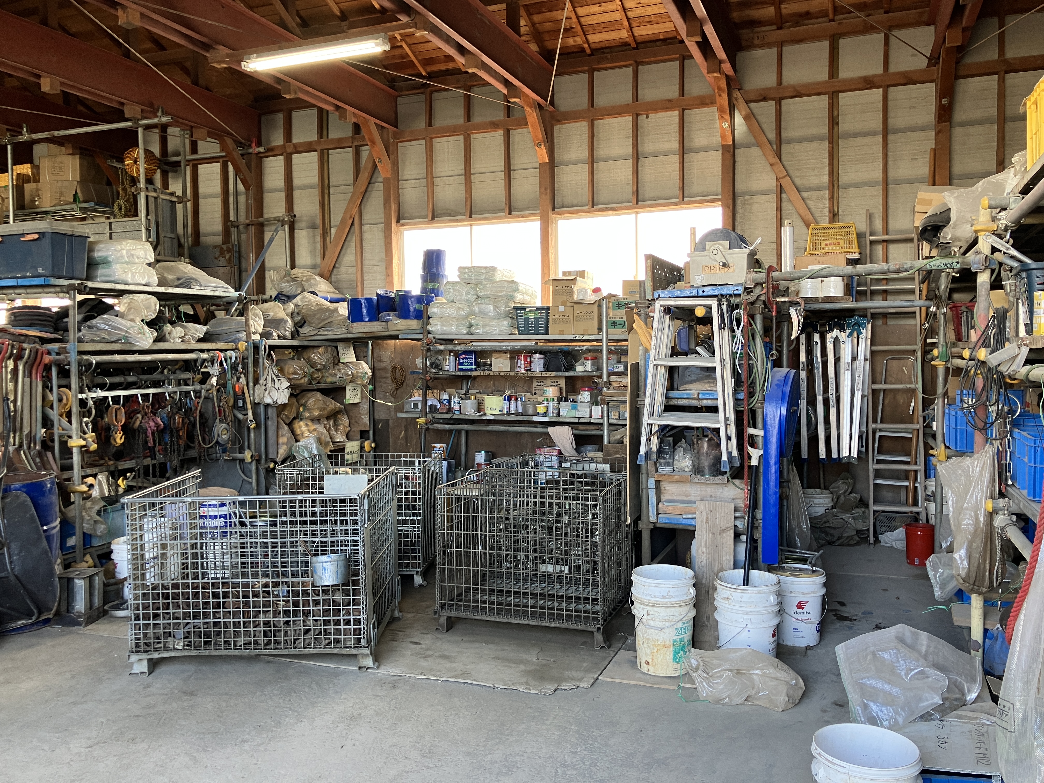 - 資材センターにて仮設資材の移動や整備・清掃など。使用して戻ってきた資材の清掃・注油作業。フォークリフトにて積み込み作業などもあります。