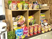 インスタント食品、お菓子、冷凍食品、日用品の中から