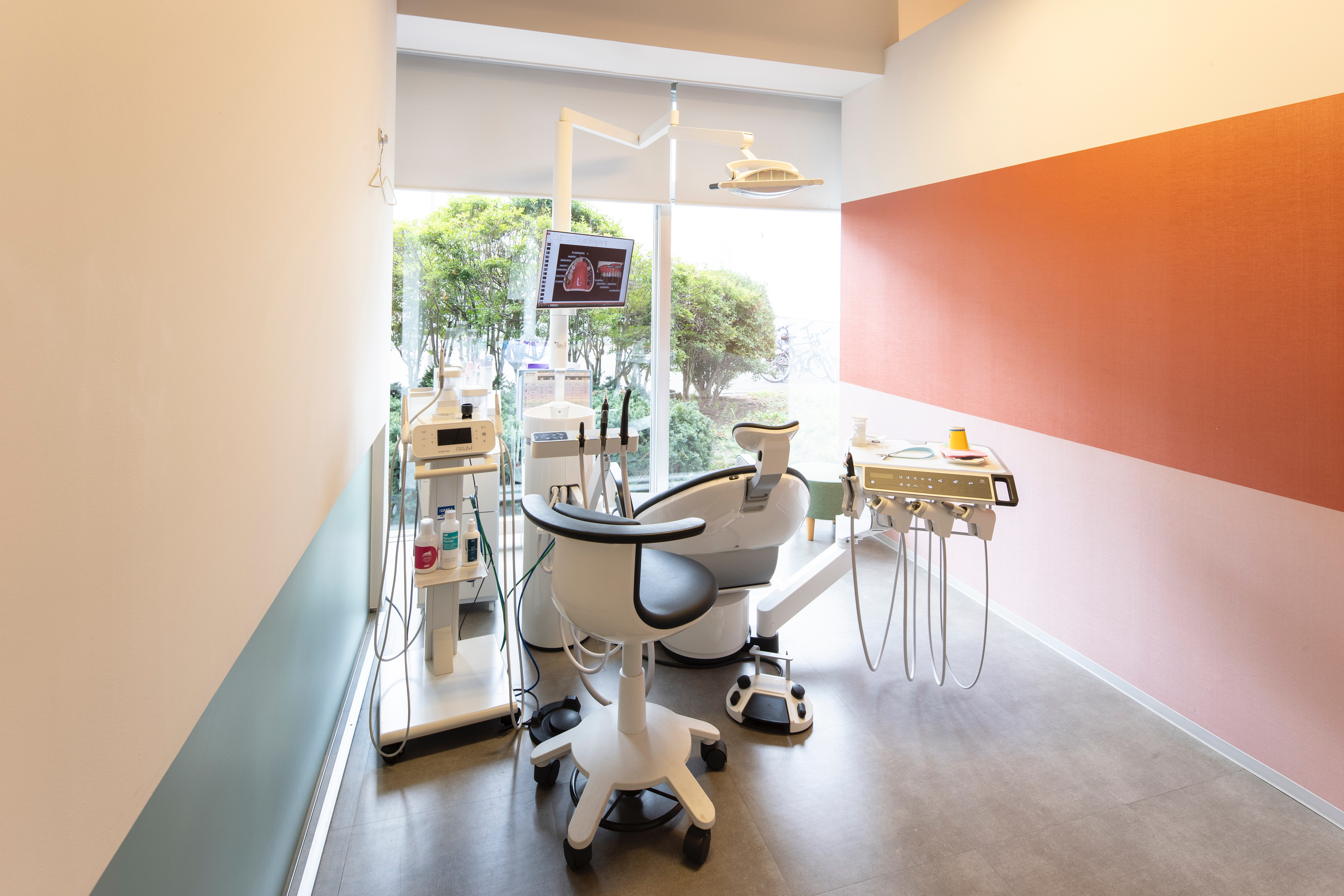 院内はブラウンを基調としつつ、随所にカラフルなインテリアが置かれており、清潔感溢れる落ち着いた空間になっています。