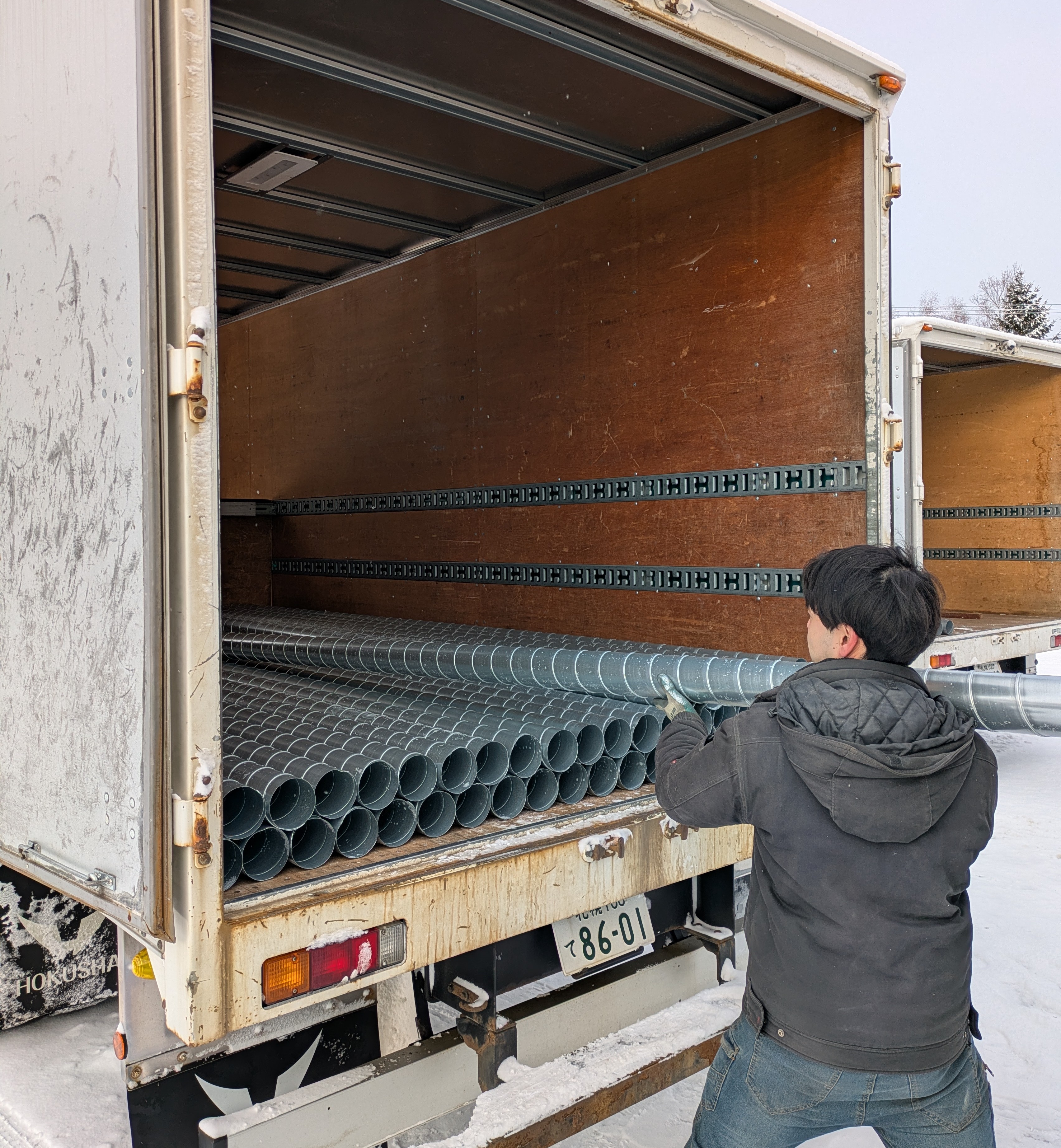 細めのスパイラルダクトなら、一人でもサクサク積み込めます。自分のリズムでテキパキ進められるのがこの仕事の面白さ!もちろん、大きな荷物は仲間が駆けつけるので、無理せず作業できますよ◎