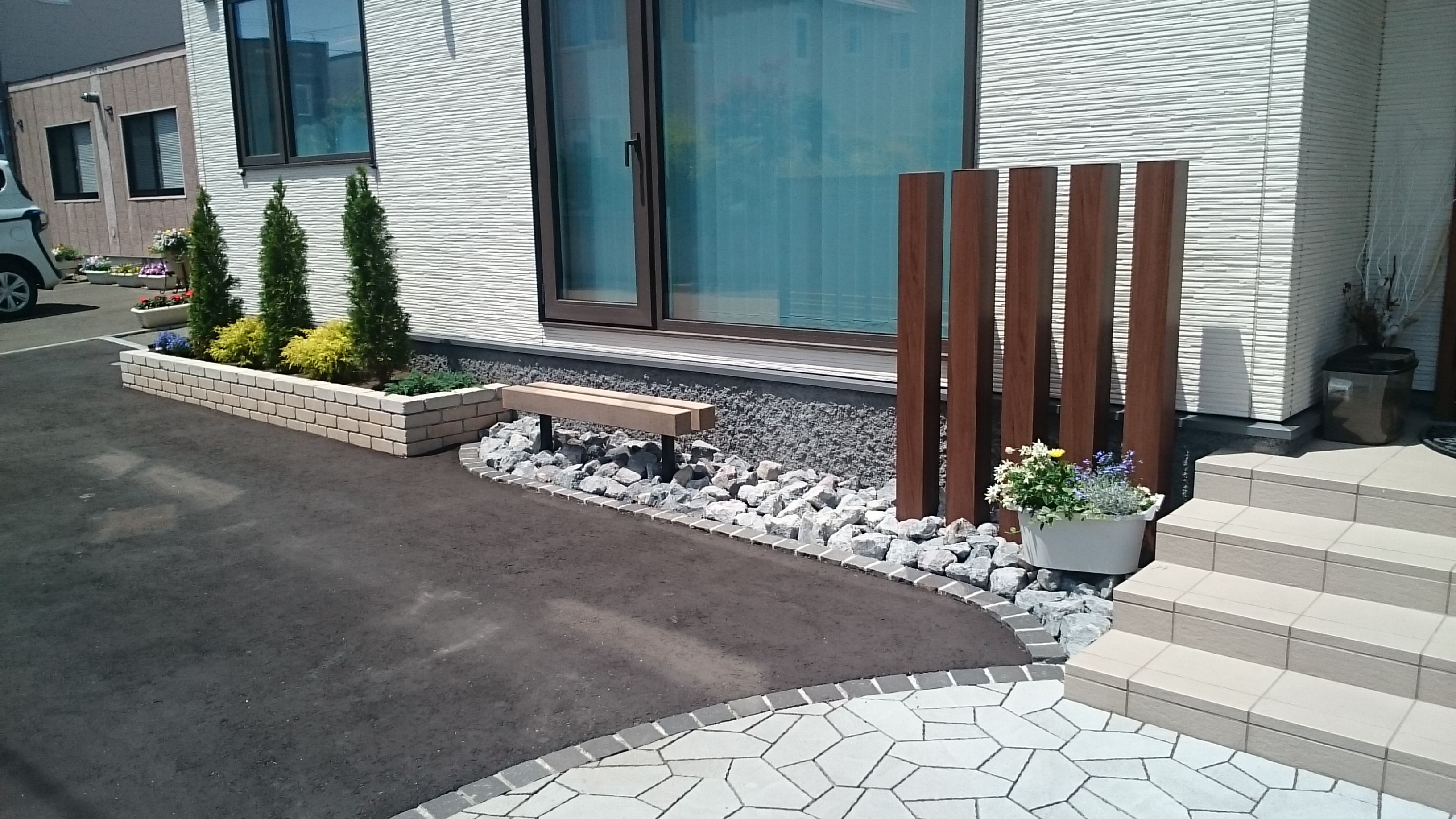 - 一般のお客様や大手ハウスメーカー様からご依頼をいただき、札幌近郊の個人宅を中心に、造園・外構・土木工事全般を行います。