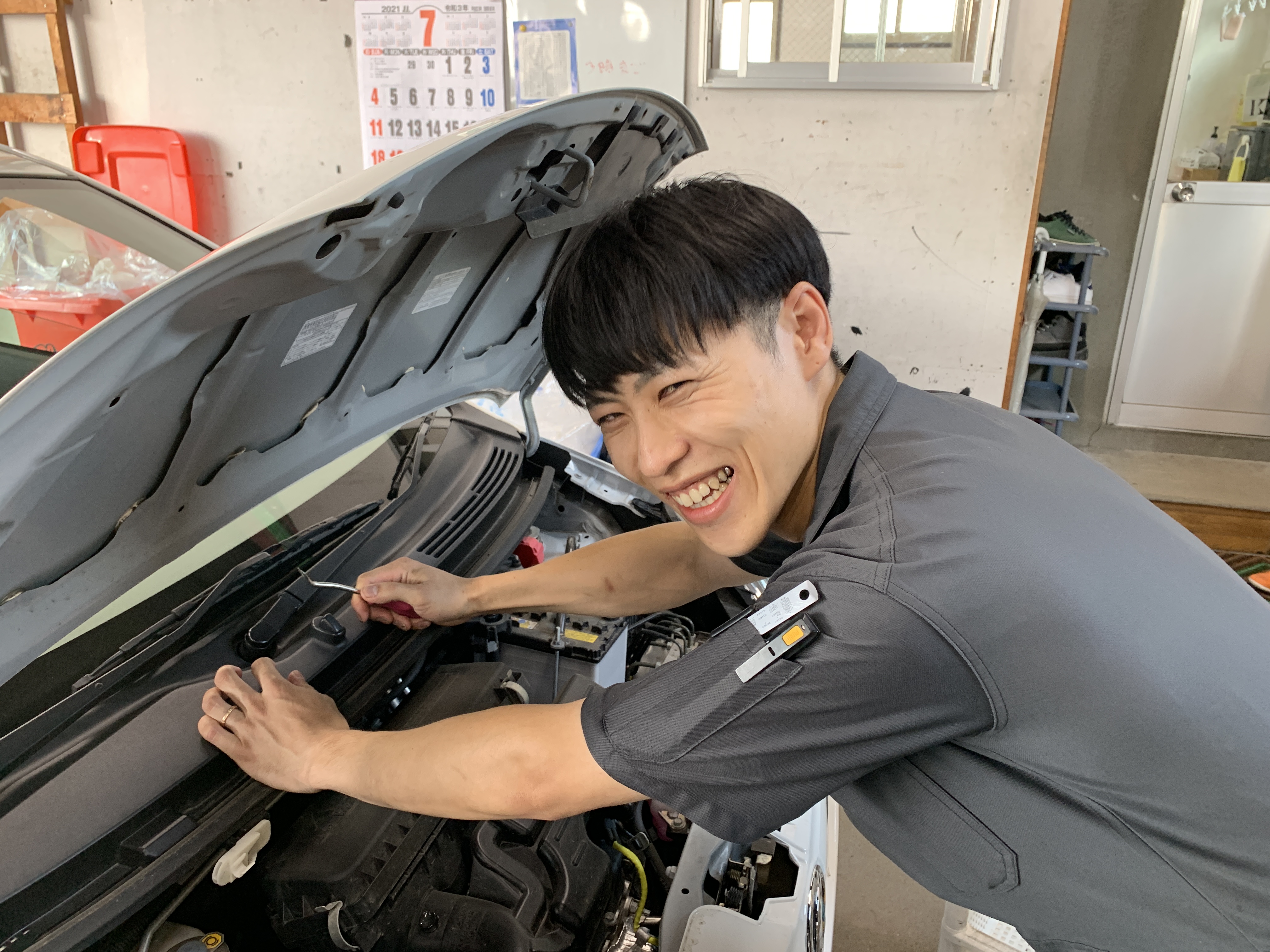 以前は異業種で働いていましたが、たまたま求人を見つけ応募しました。車のことなんて詳しくないし、工具も使えなかったのですが…笑
