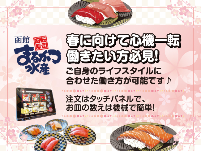 回転寿司店ということで「敷居が高そう・・・」と感じる方もいるかもしれませんが、当店では未経験の方や初めてのアルバイトの方も多数活躍中!