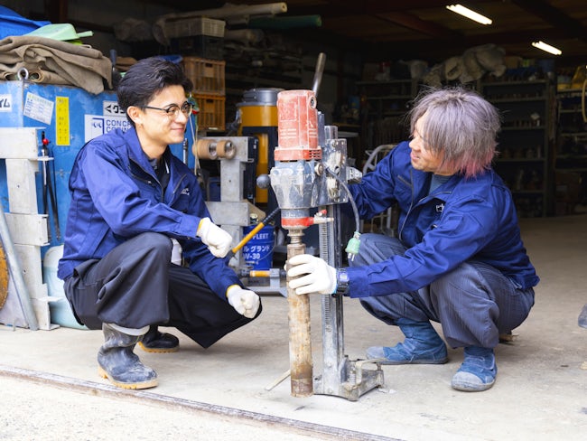 もちろん、1年で1人前を目指すのではなく、各リーダーにも「3年は教育期間というくらい長い目で見て指導してほしい」と伝えているので安心してください。コンクリート切断穿孔は機械を操作する割合が多く、一般の土木や建築の作業に比べて力仕事が少ないため、40代の未経験からチャレンジした社員もいます。