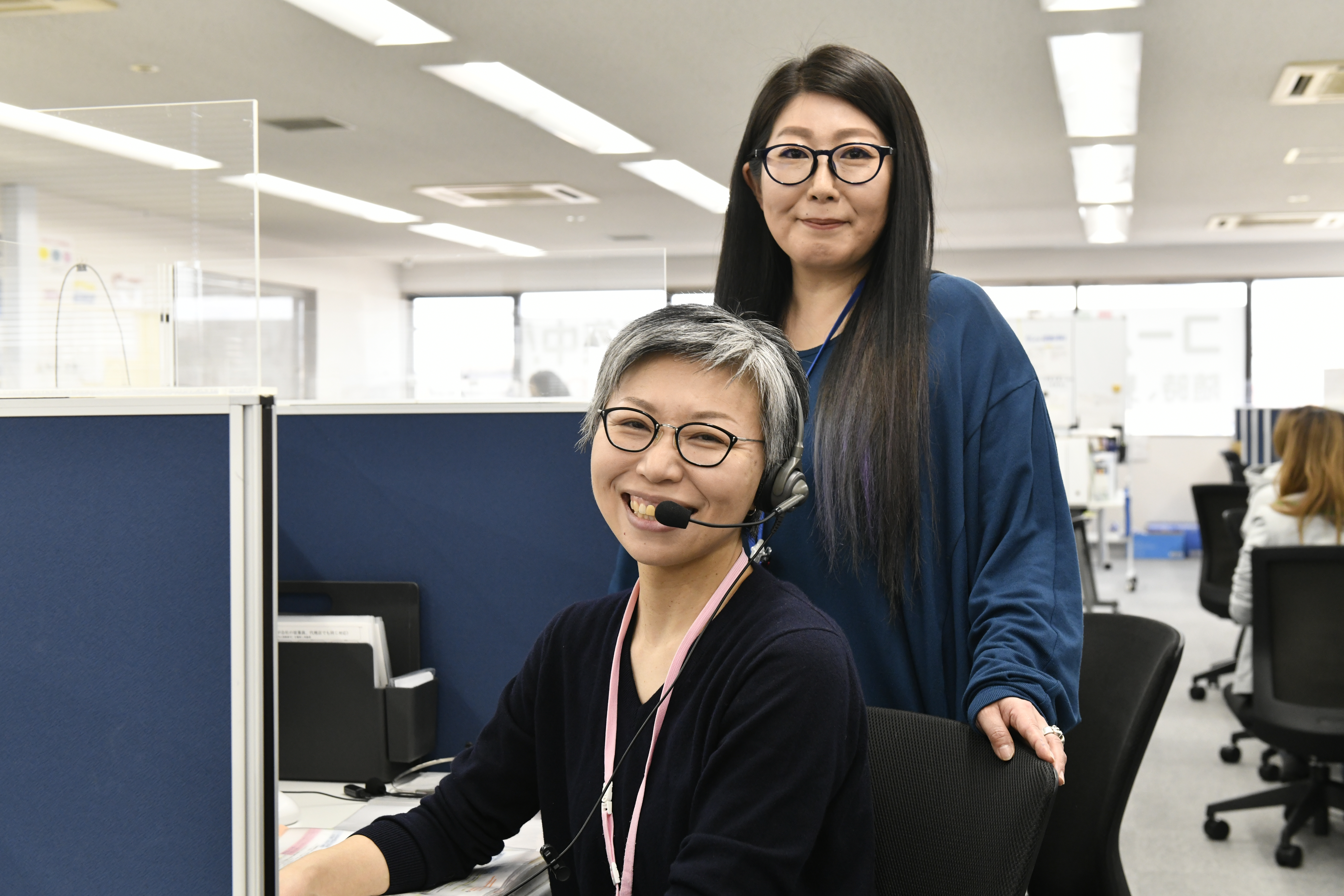 現在、ここで働くのはSV、コミュニケーターを含め35名ほど。年齢は40代が多く、最年長は63歳。半数は未経験からスタートしています。人と話すお仕事なので、販売・接客から転職してきた方が多いですが、前職は工場勤務という方も活躍しています。冬でも快適なオフィスで、座ってできる仕事という点に魅力を感じて応募してくれる方が多いですね。