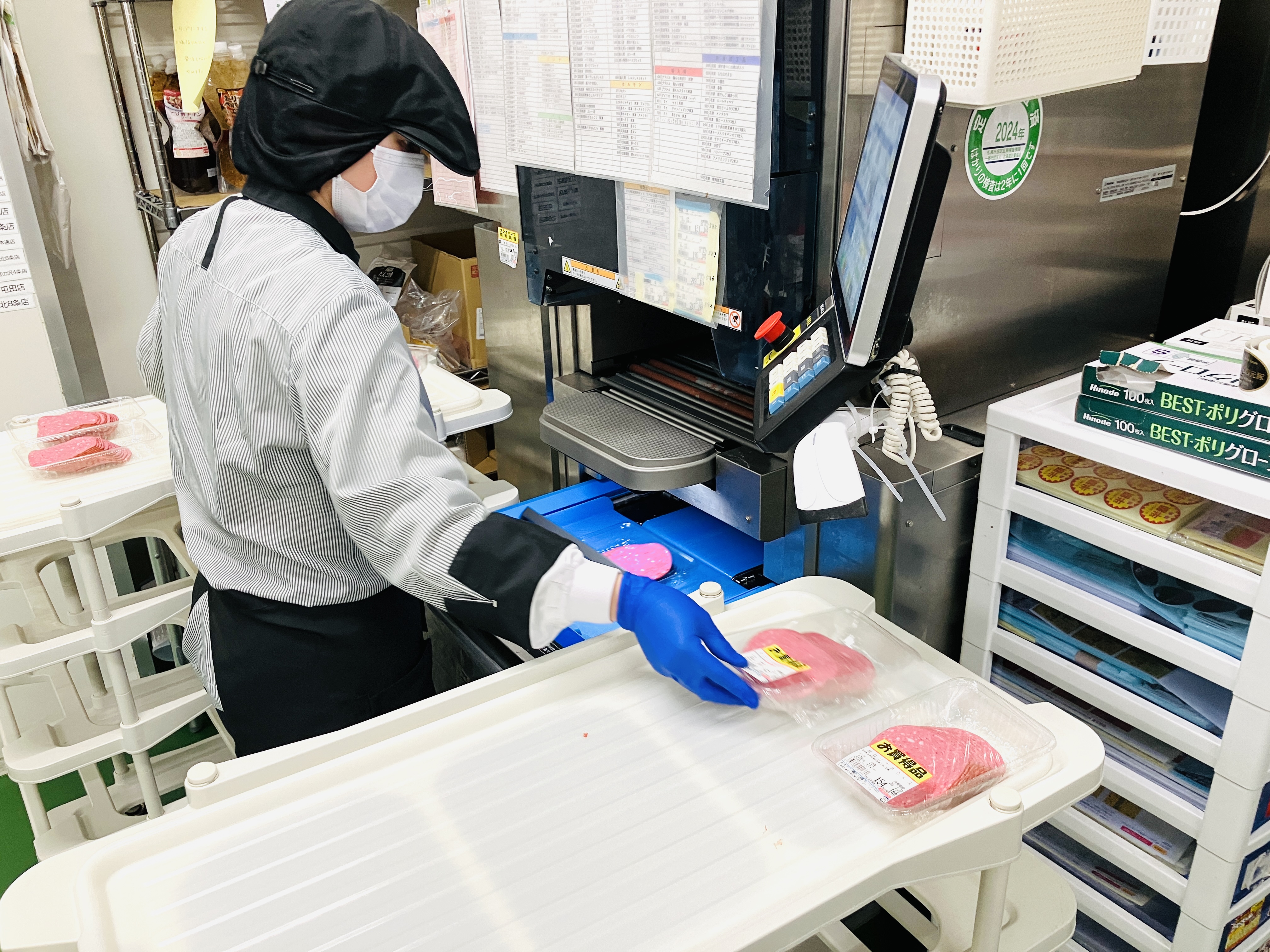 青果スーパー精肉部門での食肉パック詰め・陳列作業