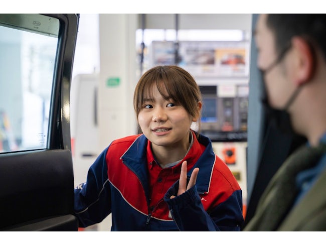 車の知識はゼロからのスタート。周りのサポートで無理なく楽しく働けています!(新川南SSスタッフ)