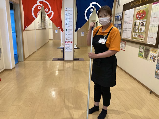 たまゆらは、館内・浴室の清掃にも力をいれています。館内の清掃、脱衣所の整理整頓、モップがけ、トイレ掃除、定期的なサウナ清掃、お湯の温度チェックなど…いろいろな仕事がありますが、その時々の混み方や状況を見て、自分で段取りを決めてひとりで作業ができるのもいいんです。お客様には快適に過ごして欲しいと思っていますので、「いつもキレイにしてくれてありがとね」と声をかけられるとやっていて本当に良かったと思います。