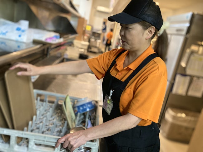 作業マニュアルもあり厨房に持ち込めますし、最初は確認しながら進めてOKなので、ひとりだちまでサポートします。18歳の学生さんから私のような60代まで様々な年代が活躍できますよ。