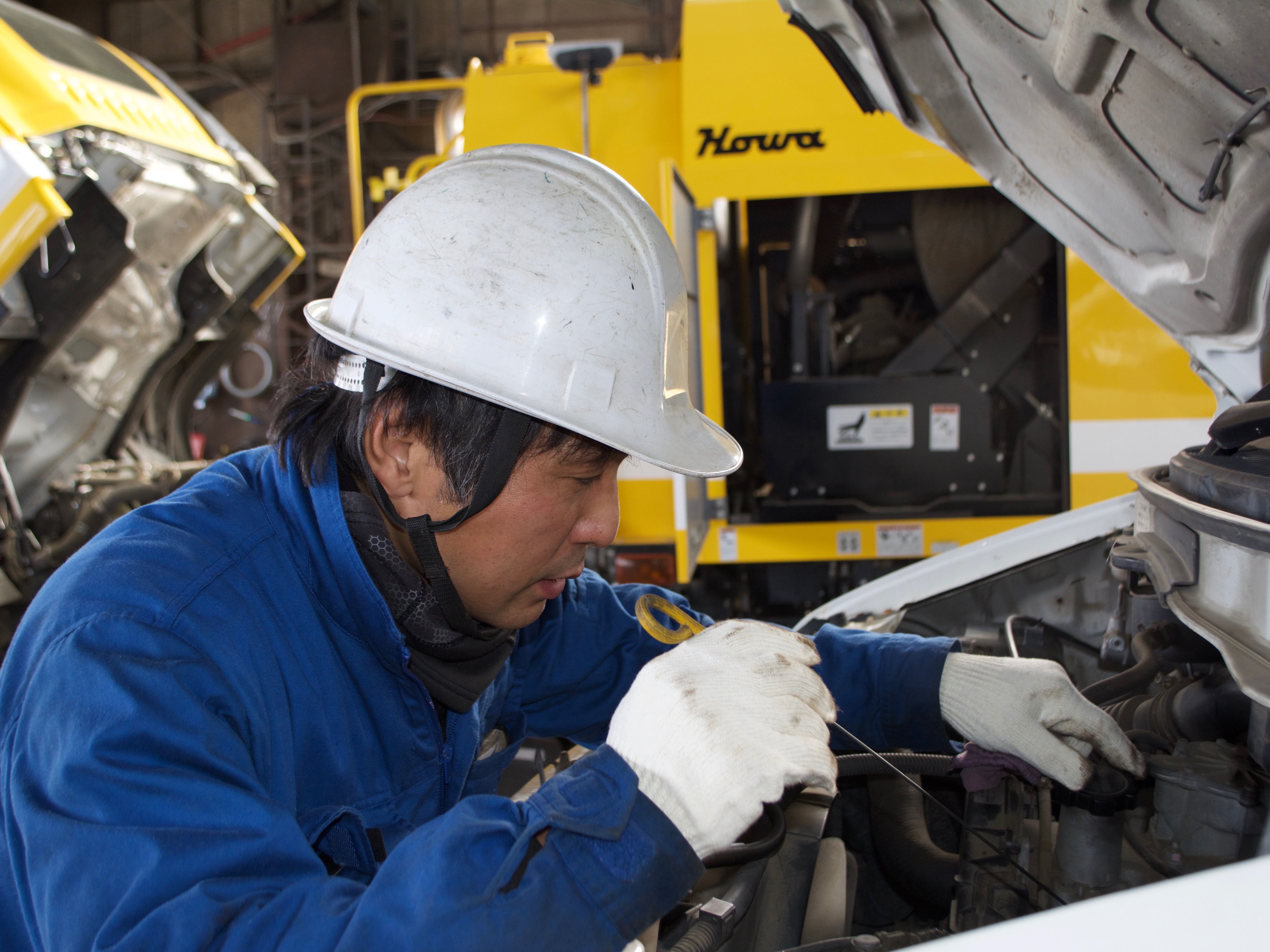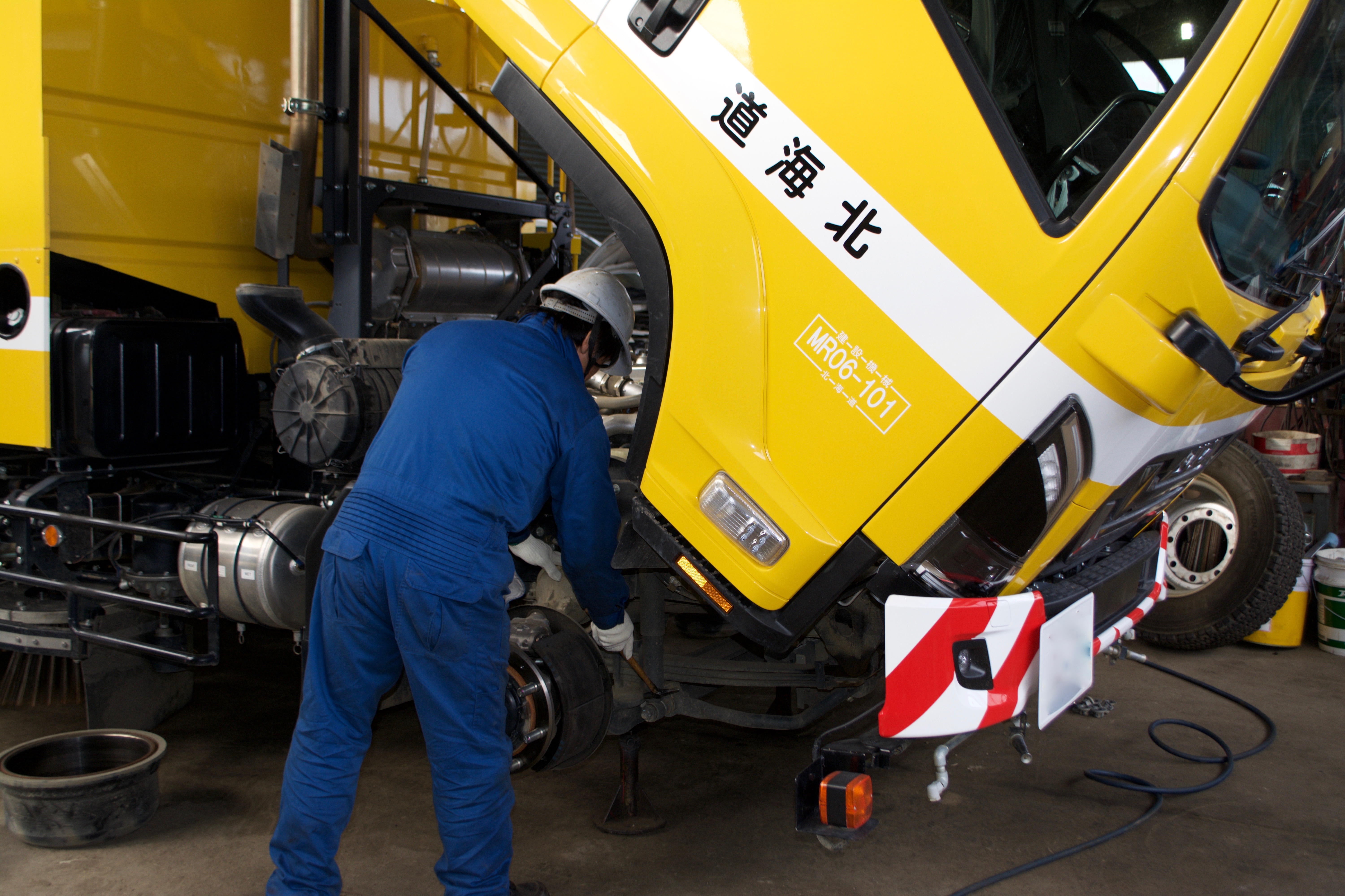 - 小型自動車から大型特殊車両まで様々な車輌の整備・メンテナンス。基本は工場内での作業ですが、取引先や現場に直接出向いて作業を行うこともあります。