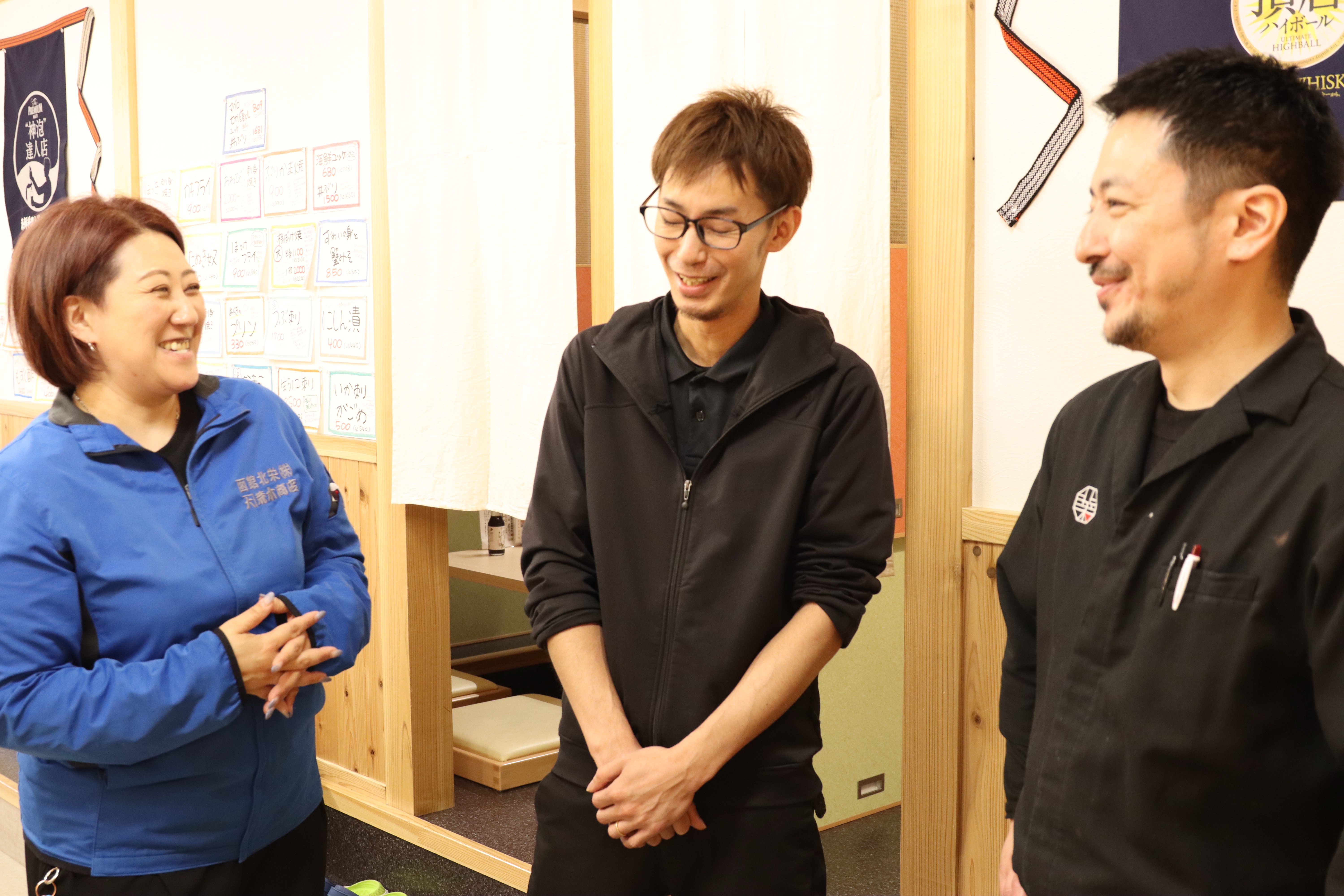 調理学校を卒業後、いくつかの飲食店を経て入社しました。当社は「活もの」に触れられ、技術の高い先輩から技術を丁寧に教えてもらえるのでスキルアップには抜群の環境。加えて、飲食業界では休みも多く、市内では待遇も良いほうです。GWやお盆を除いては有給休暇も取りやすく、先日も家族と東京旅行に出かけました。僕自身、何となく調理の道に進みましたし、「楽しくない職場はイヤ」と思うタイプ。地元の函館で両親や友人たちと過ごし、アウトドアや釣りを満喫しながら「楽しく働ける」のは、やっぱりイイですよね!