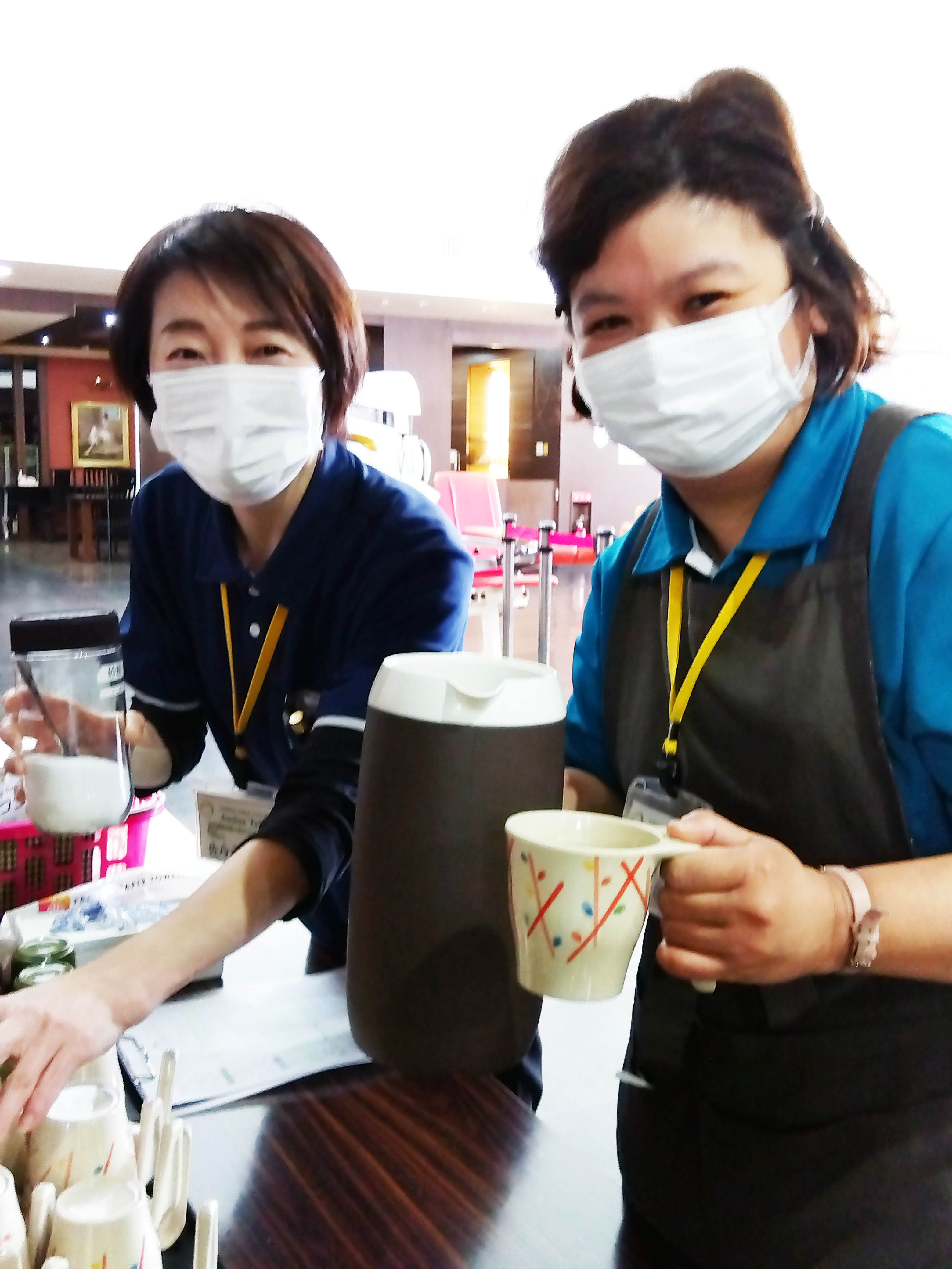 利用者さまが飲料やおやつの準備や配膳を行っています。