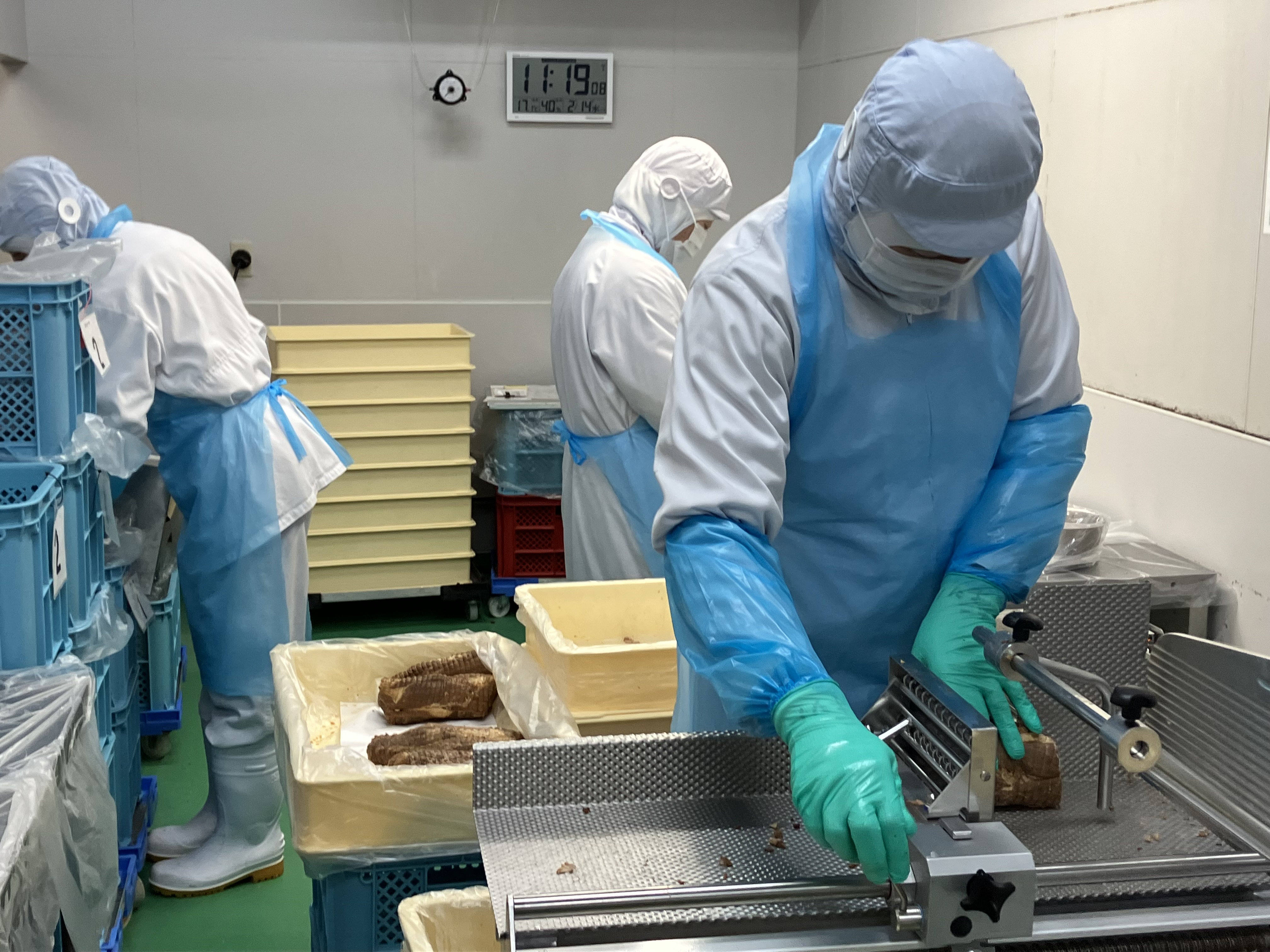 ・肉の計量作業